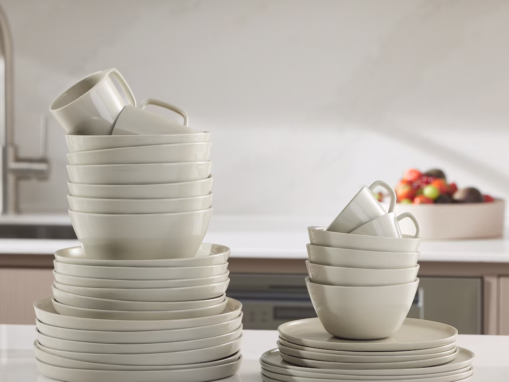 Stress-free loading: ingenious adjustment options create space in the dishwasher even for small items.We have improved the cutlery tray, so it can now also accommodate even small items such as espresso cups. The 3D MultiFlex tray [7] has a sunken central section and two side sections. The left-hand section can be pushed to the right to create space for tall wine glasses in the upper basket. The depth of the right-hand section can be adjusted to easily accommodate large items of cutlery and small items of crockery.