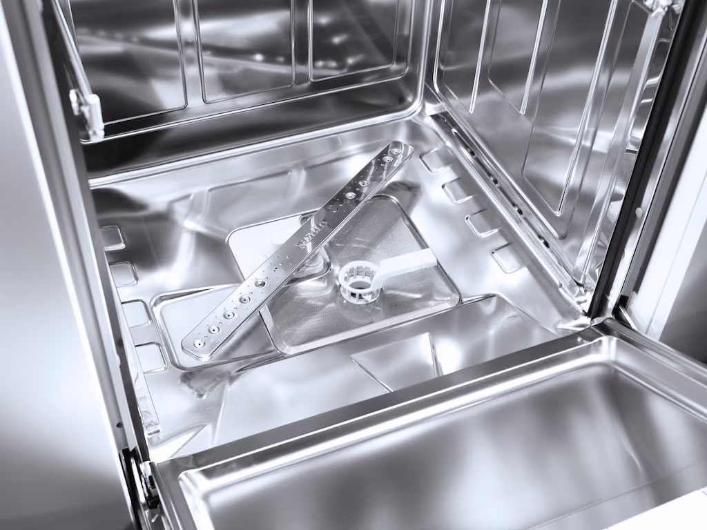 Saving water and energy: cleverly designed water supply reduces consumption.In the ECO programme, water consumption is reduced to 8.9 litres. This also means that less energy is required to heat the water, and you benefit from an energy-efficient dishwasher. The water savings are achieved through the intelligent design of the supply system and a new, highly efficient filter system. Additional insulation reduces thermal losses and thus the amount of energy required to heat the water.
