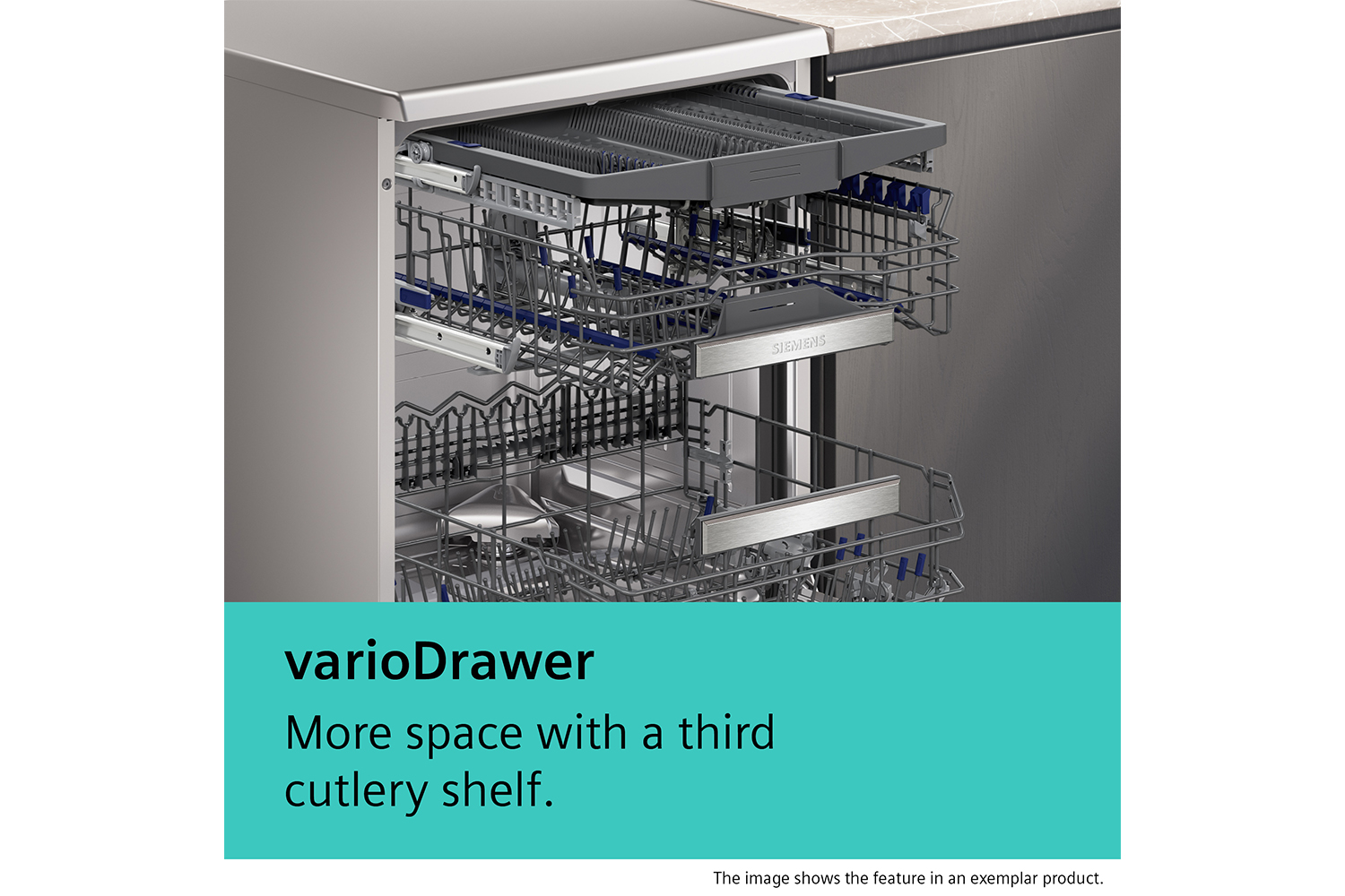 The siemens variodrawer offers additional flexibility for organising and cleaning your dishes. With this innovative feature, you can conveniently place and clean your cutlery, utensils, and small kitchen items separately from the main dishwasher baskets. This third shelf not only maximises the available space in the dishwasher but also ensures thorough cleaning and optimal drying results as well as easy loading and unloading.