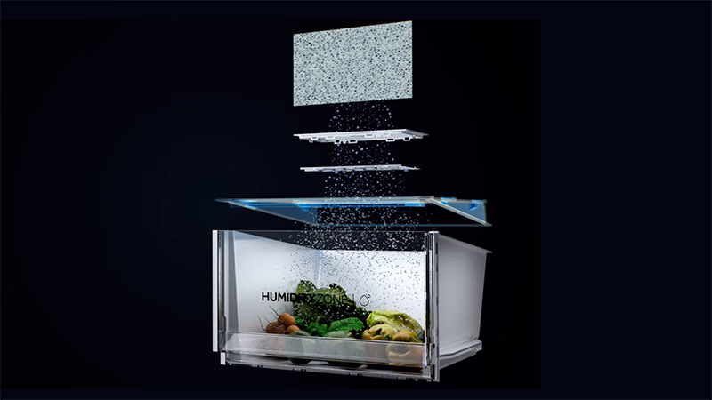 Haier’s practical Humidity Zone keeps your fruit and vegetables fresher two times longer*. This happens thanks to HCS (Humidity Control System) Technology, a plant fiber membrane that can keep moisture at 90% and automatically manages the right humidity. This avoids any condensed water inside the drawer. By keeping the humidity within the compartment at 90%, it still allows cool air to circulate, so you store your groceries and also maintain their nutritional content for longer.
