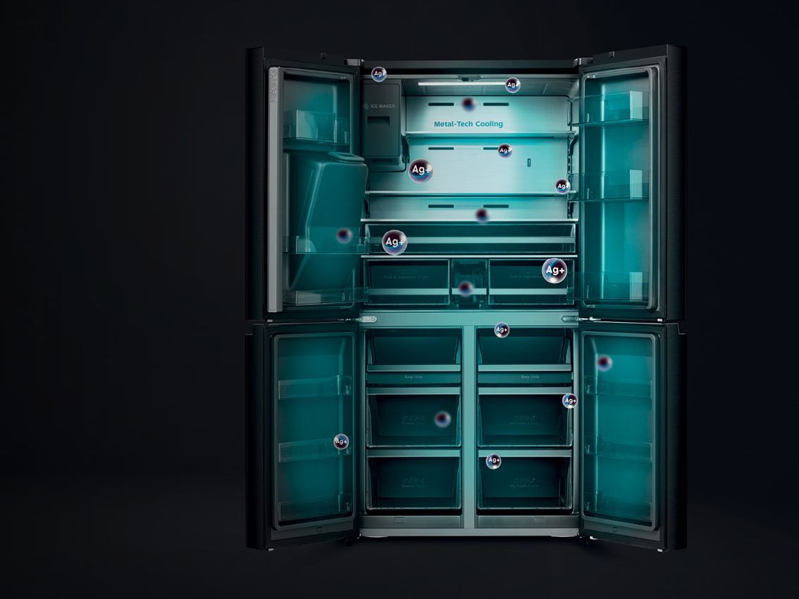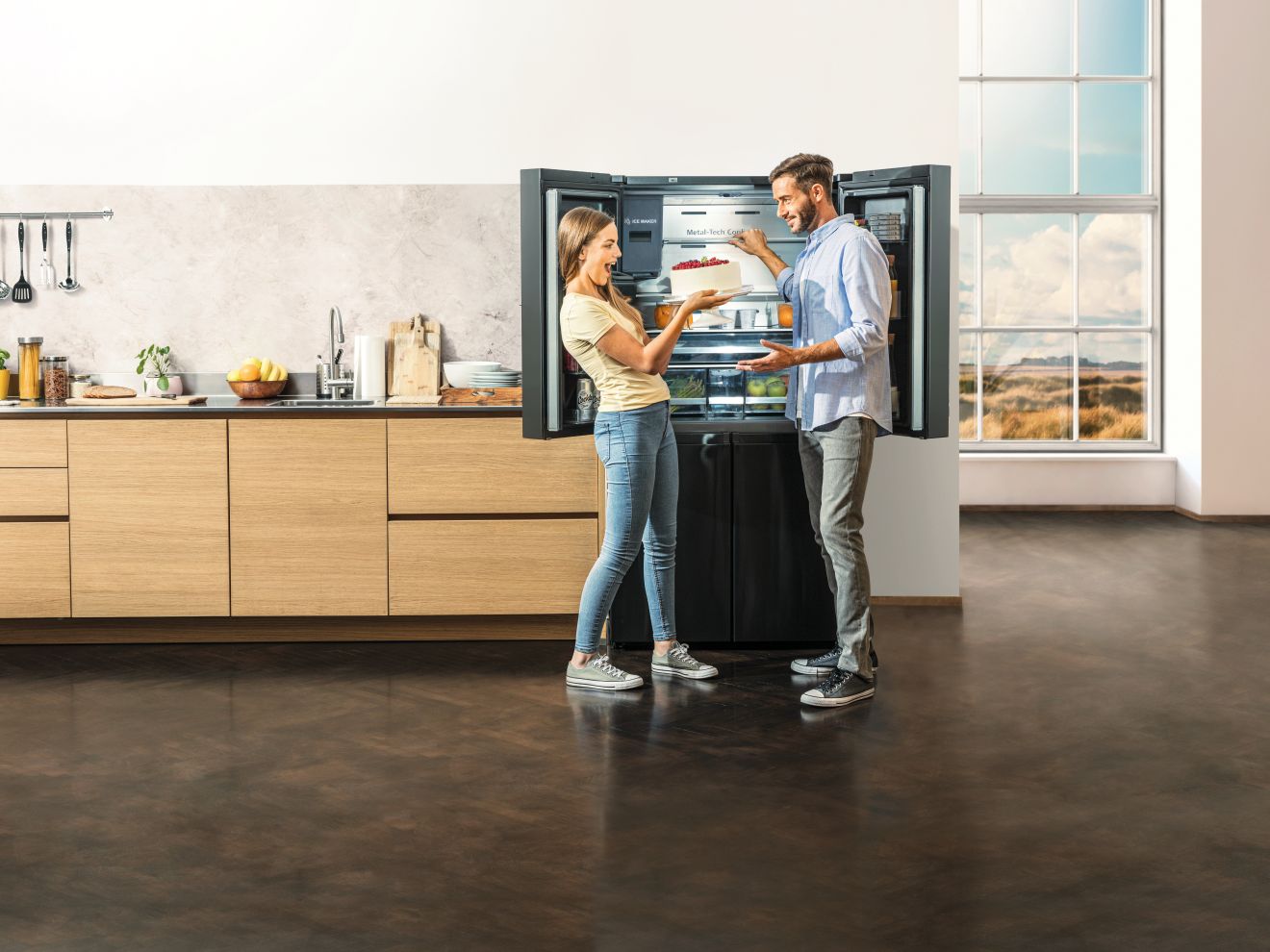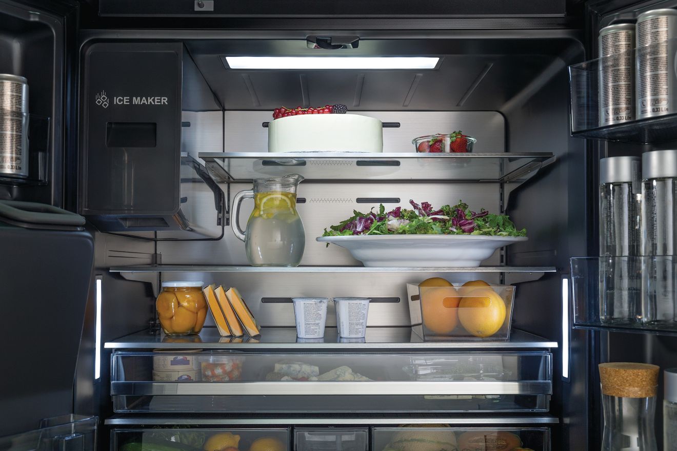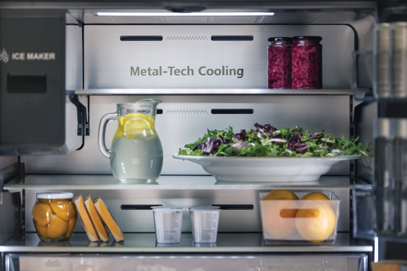 The rear wall of the fridge is overlaid with stainless steel, which ensures the cool air is distributed evenly from the inside out. This combination of advanced technologies ensures ideal temperature and humidity levels at all times.