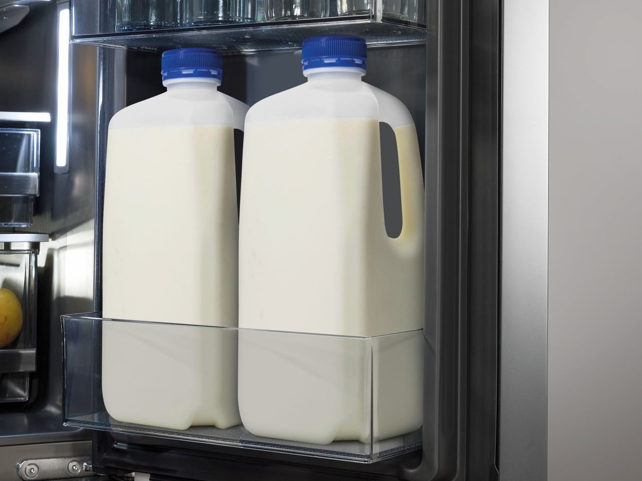XXL Door Balcony enables you to safely store bigger and taller items inside the door. It can handle bulky cartons of milk or juice and two rows of drink cans and bottles. Totally six door balconies in the fridge provide a huge storing place.