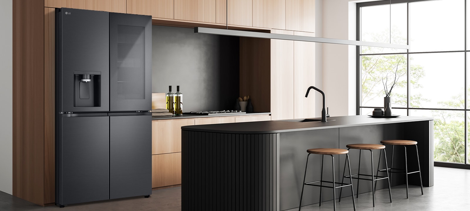 • LG instaview feature is a sleek glass panel that lights up with two quick knocks, allowing you to see the contents inside without opening the door