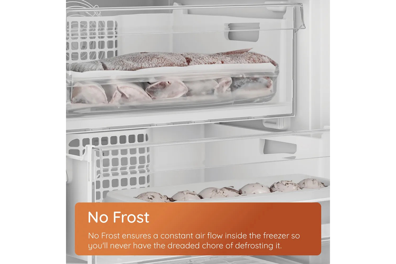[This review was collected as part of a promotion.] Really happy with this fridge freezer – easy to install, loads of room in the fridge and salad drawer. It gives a helpful beep if the door’s left open too long. Freezer drawers glide in and out smoothly, and it cools down quickly with no problems with ice build-up.