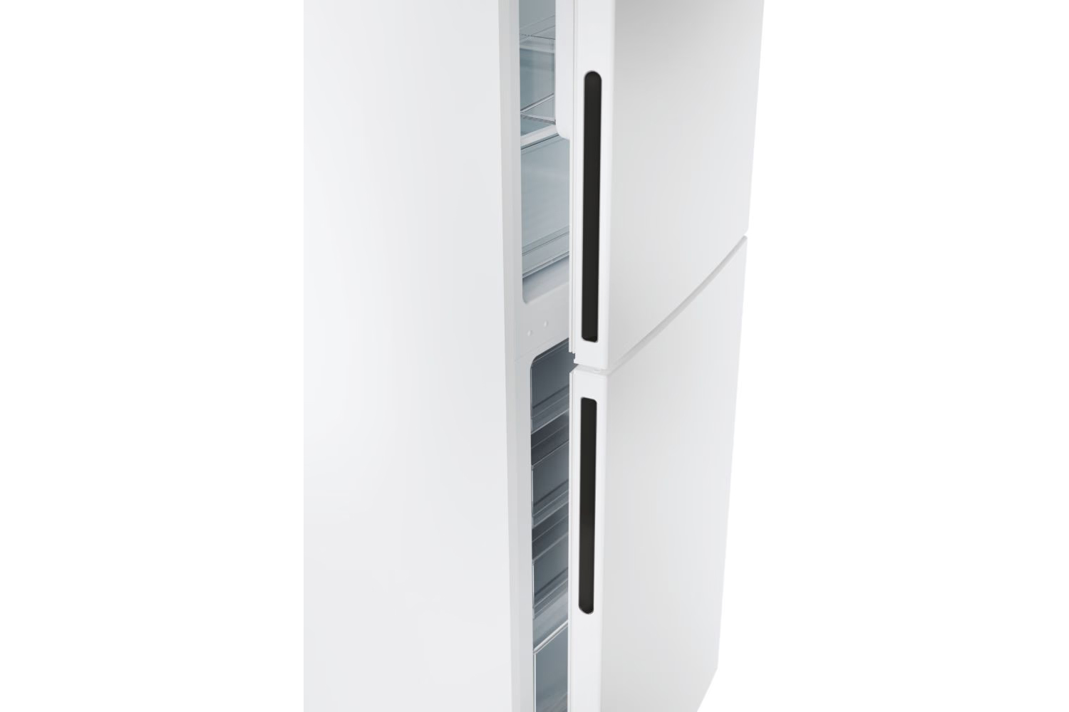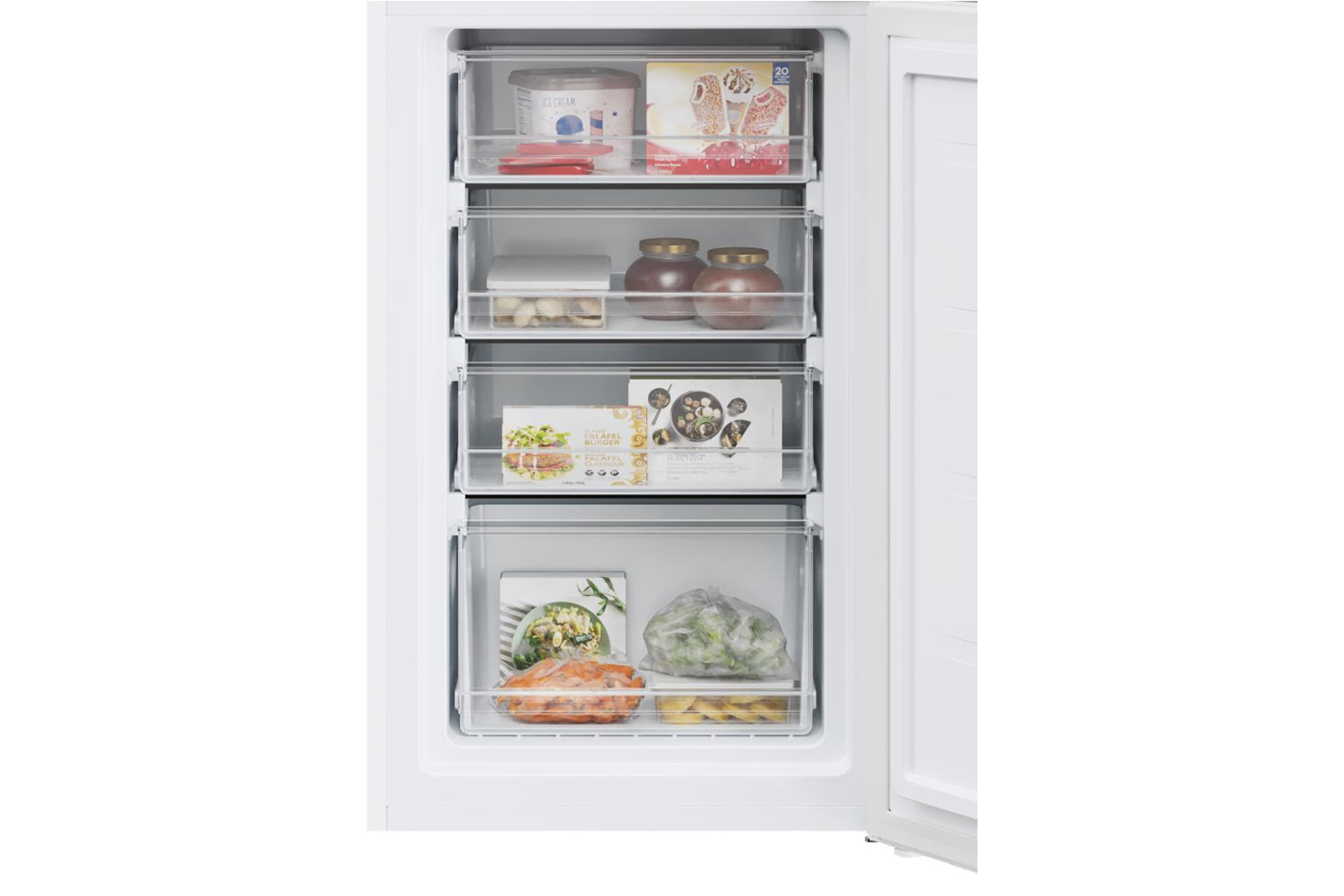 Fitted very well in small kitchen and integrated door handles means it doesn't bang into other door when opening fridge.
