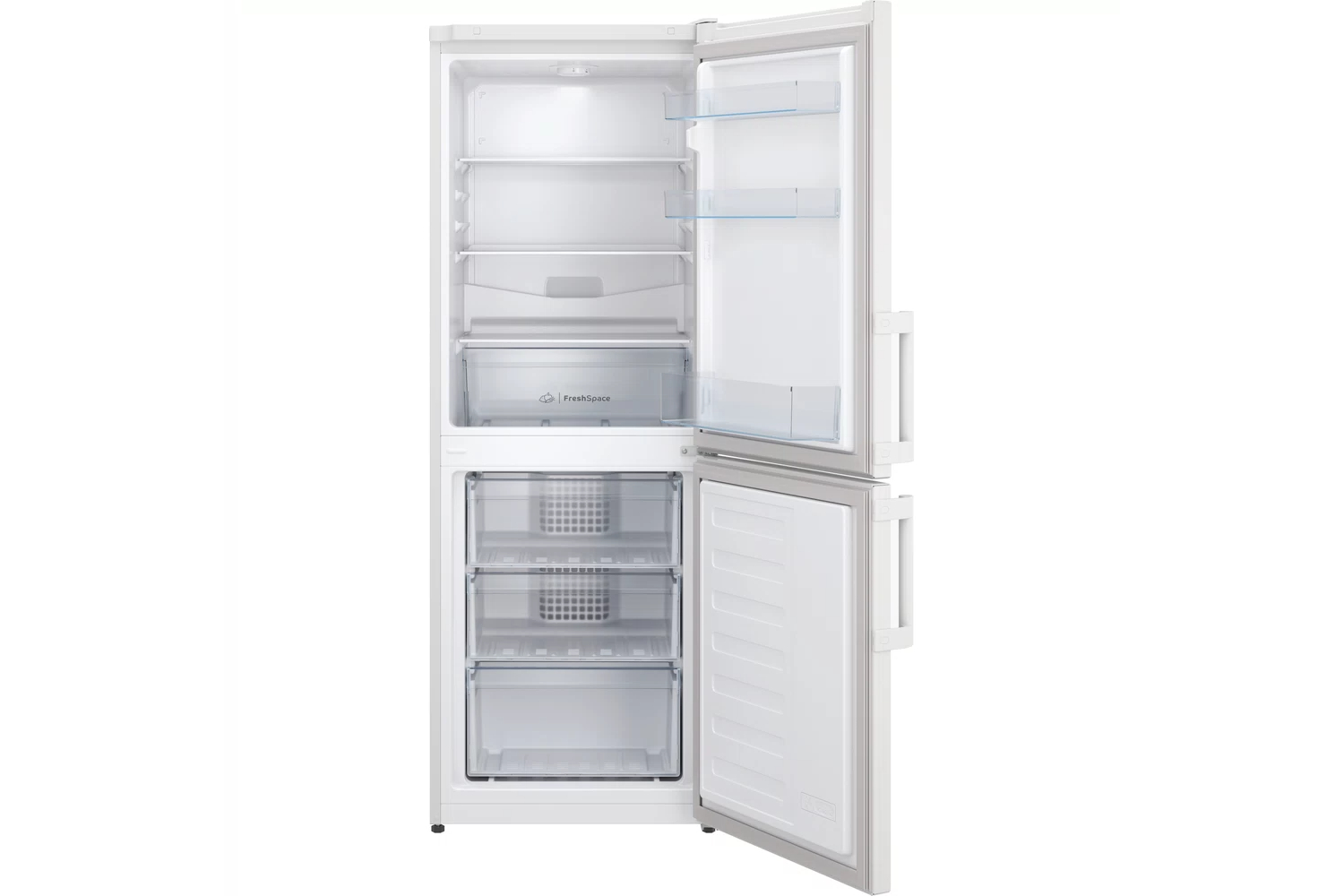 This Indesit freestanding Fridge Freezer features: white colour. Glass shelves with profile fronts, providing robustness and extra safety. Convenient bottle balcony to safely store your bottles.