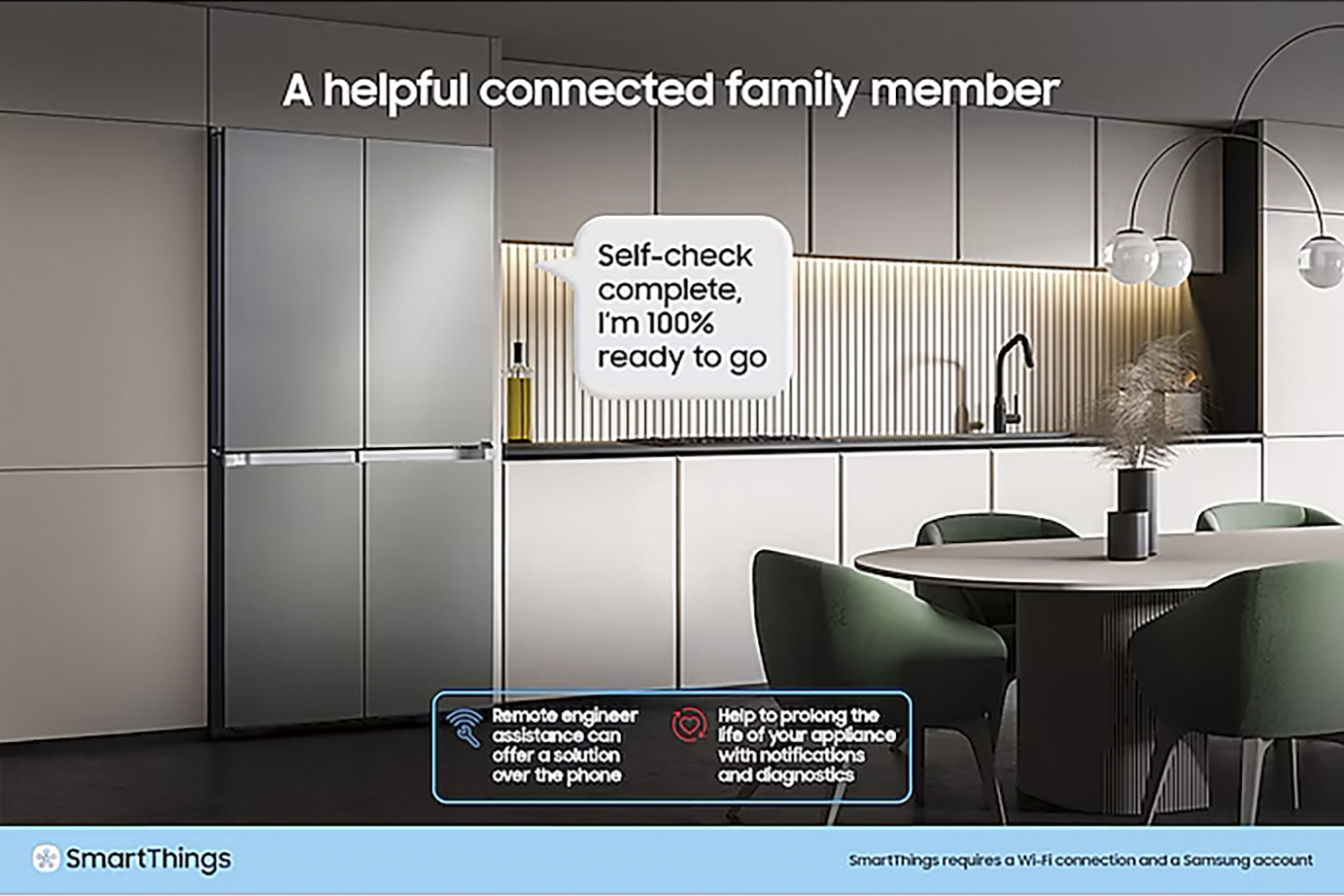 Monitor and manage your refrigerator anytime, anywhere. Its embedded Wi-Fi lets you track and adjust its performance using the SmartThings App*. You can easily control the cooling mode, change the temperature and get alerts if the door is left open. It will also detect and help diagnose issues.