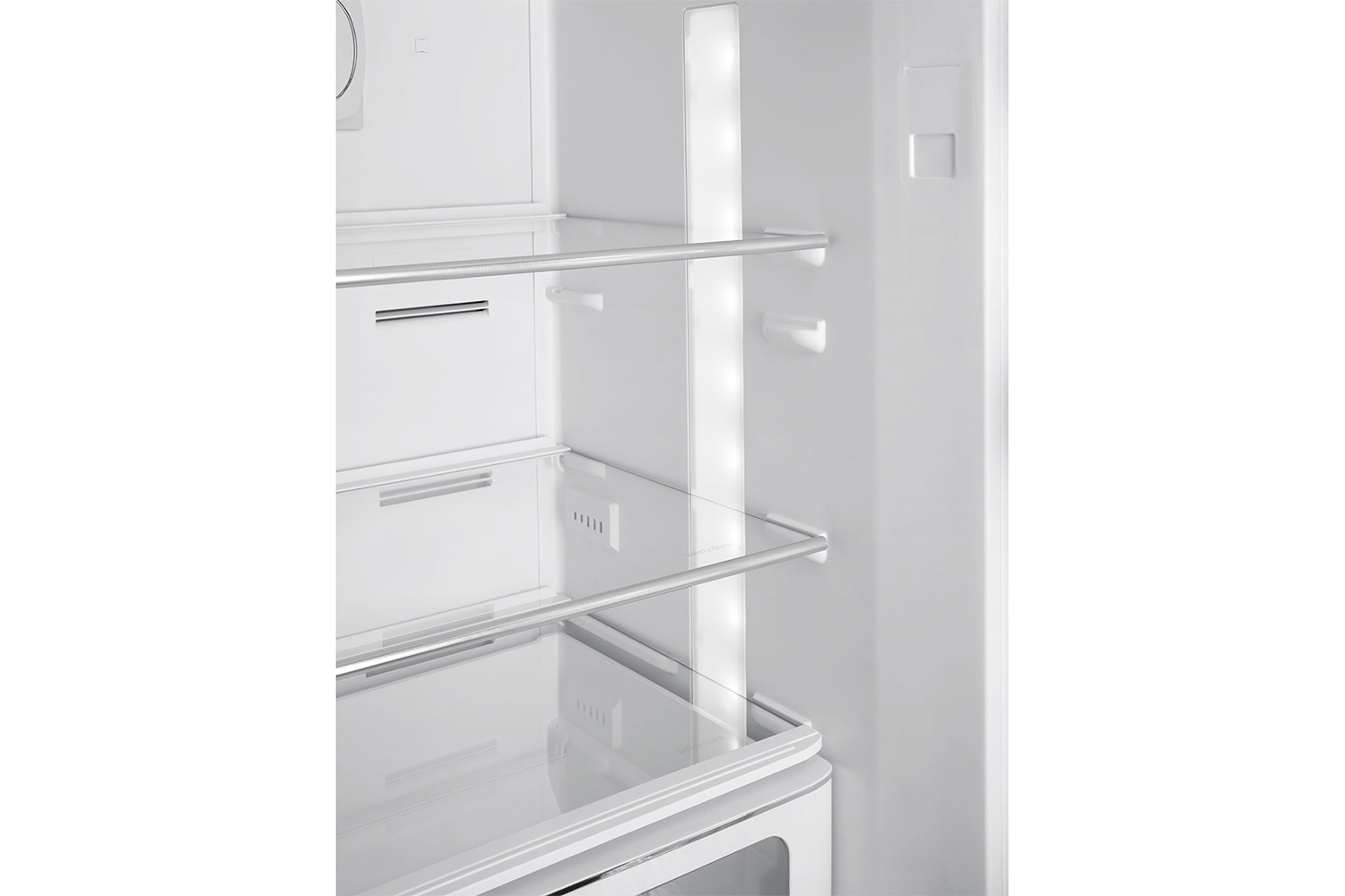 LED light strips have been applied to both sides of the fridge to provide optimal illumination and total visibility of the interior. These are more energy efficient and longer lasting than traditional bulbs.