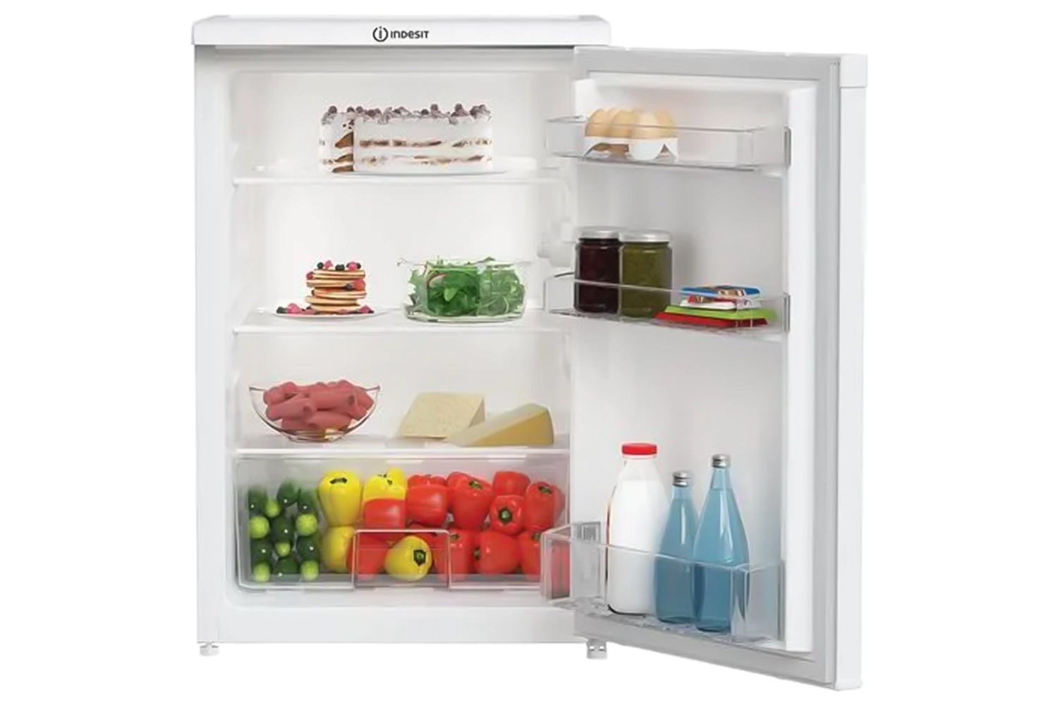 Make storing your food shop easier with this Indesit freestanding under counter larder fridge in white. It has a 128L capacity, giving you room for up to 7 shopping bags of groceries. Low Frost means less ice and more room inside for your food. Easy-to-clean glass shelves make it simpler than ever to keep your fridge frost-free. Inside, energy-efficient LED lighting gives you maximum visibility of every shelf and corner. You can even customise your fridge to suit your needs. Adjustable shelves can create space for larger items, while the reversible door means you can place your appliance where you want.
