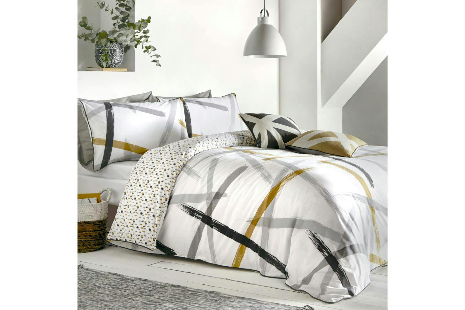 Don’t compromise comfort for style when you can have it all with the stunning Leda duvet set. It features a bold brush stroke design in contemporary tones of ochre and grey to a crisp white background and finished beautifully with tonal piped edge. The reverse features a contrasting pattern for an alternate look. This set is made using from 100% cotton and includes a matching pillowcase. Available in multiple sizes giving you more reason to buy it for every room in your home.