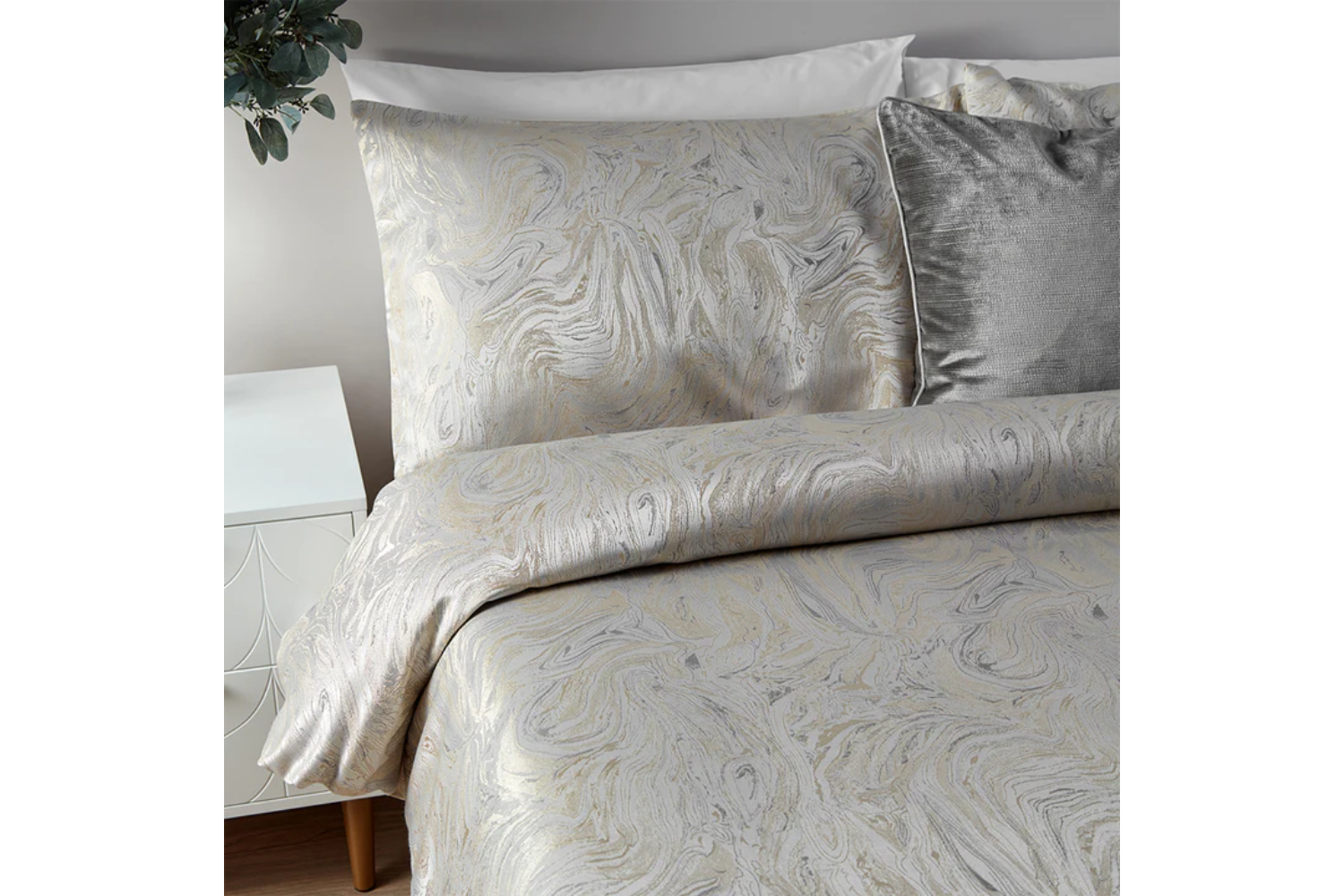 Bring a little bit of idiosyncrasy into your bedroom with this gorgeous and unique marble duvet cover set. With an oyster hue marble pattern and extremely soft to the touch fabric, this will be an asset to your home and night’s sleep.