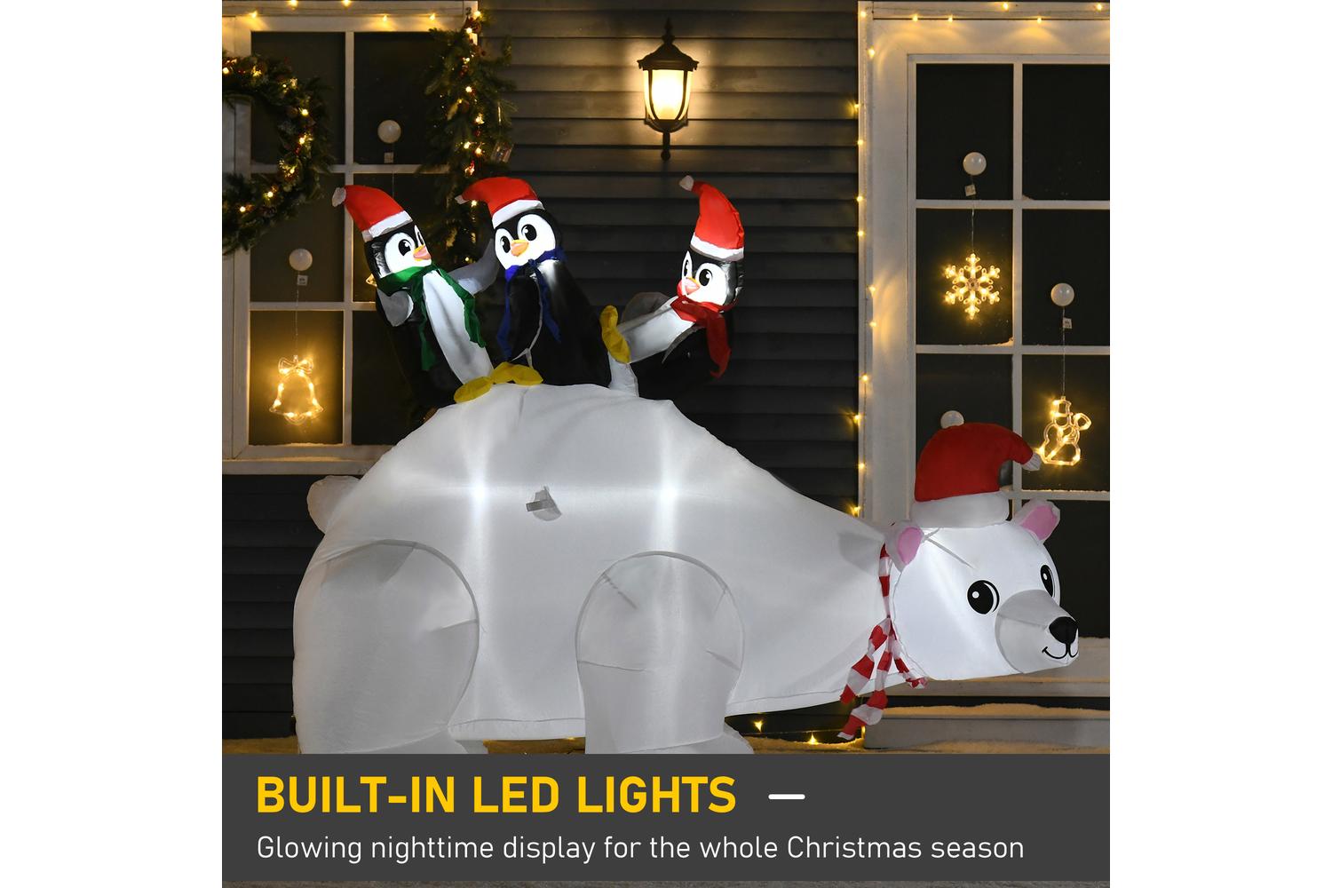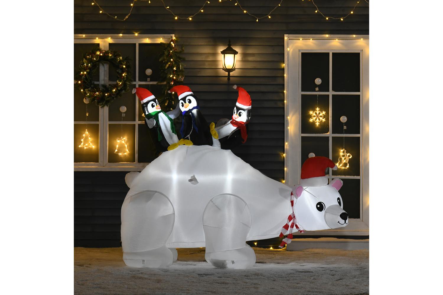 Homcom | Outdoor Christmas Inflatable Display with Penguins and Polar Bear | 5ft