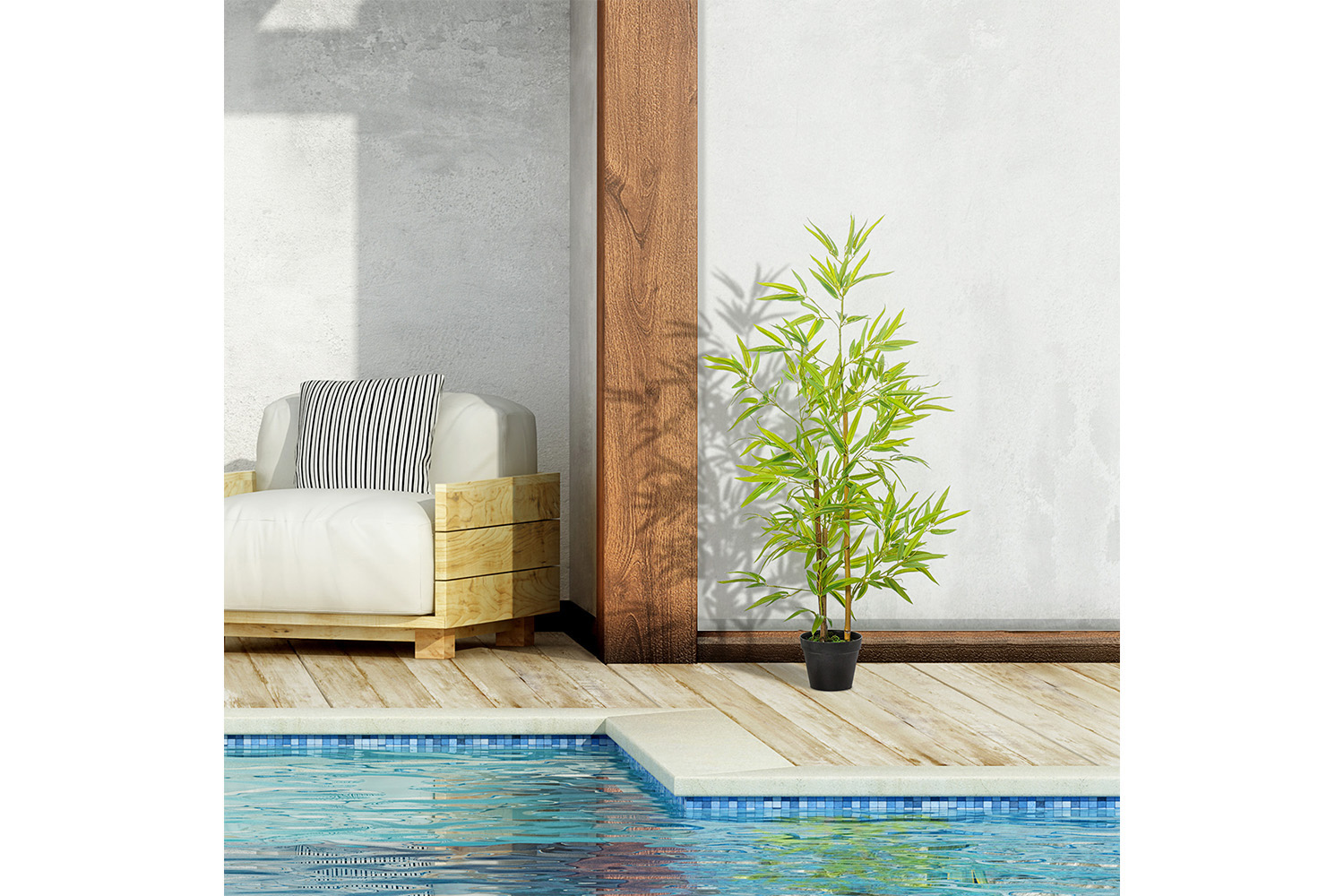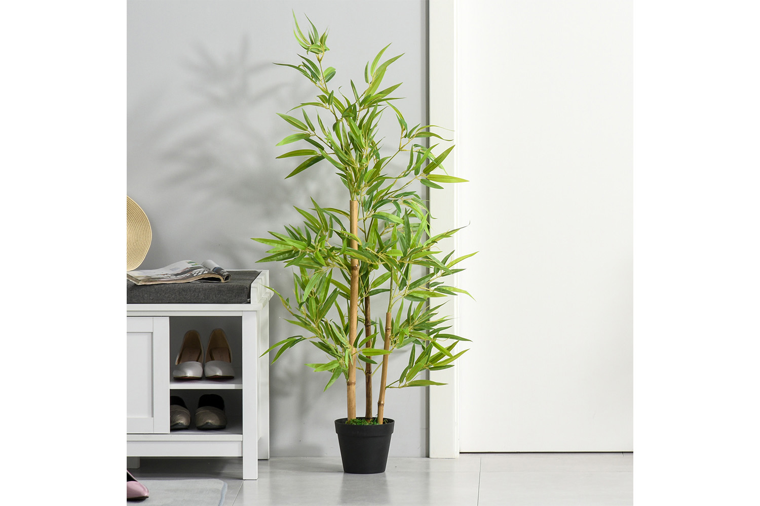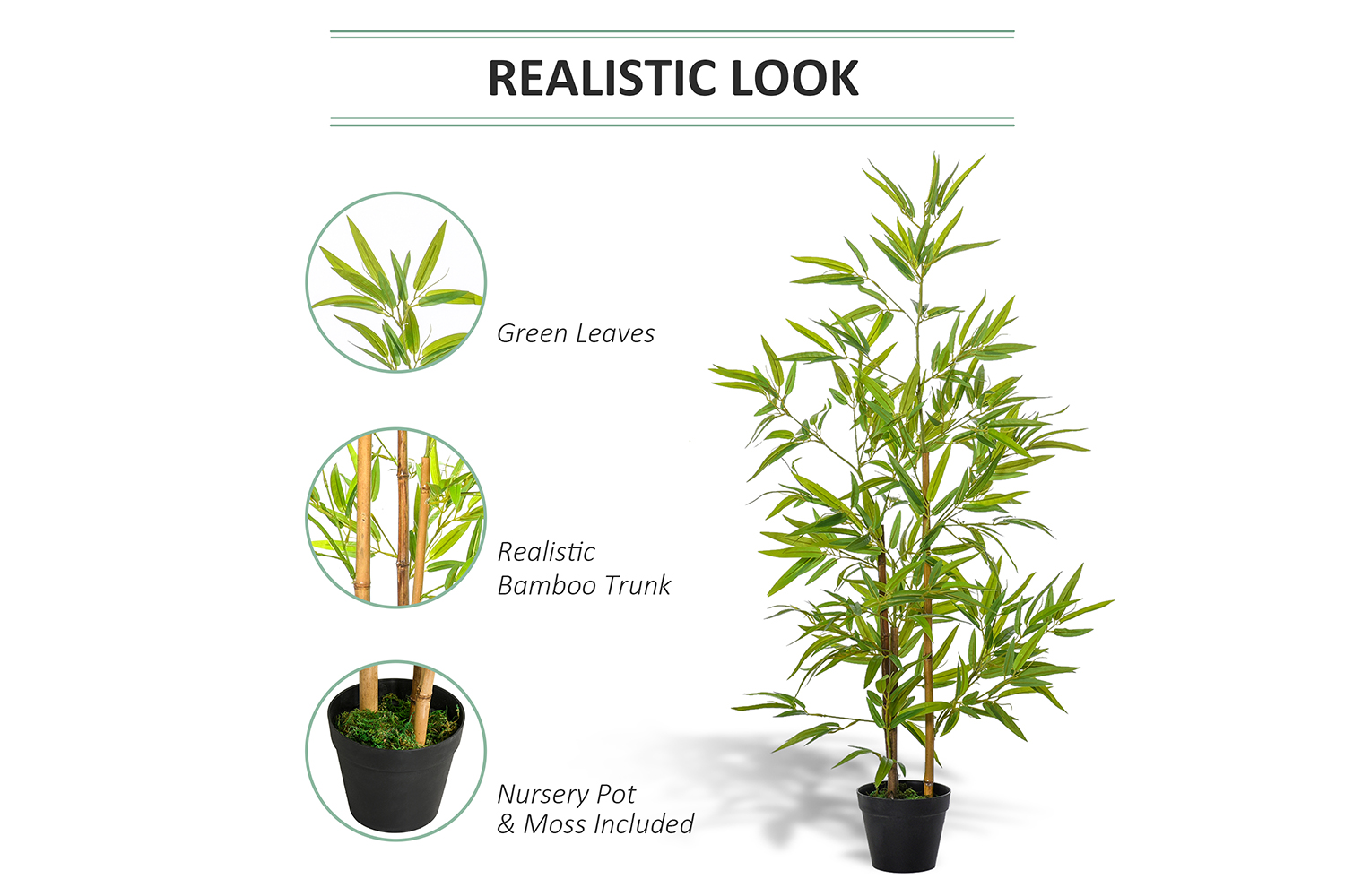 Want to grow green plants but can't keep them always green? Outsunny artificial bamboo plants are exactly what you need, they will stay green for many years without trimming and shaping. No watering, no fertilization, no worries when traveling. Realistic looking leaves create a natural atmosphere for your room and low maintenance is needed. Comes pre-potted, they are delivered ready to use and go well with any kind of décor, great for indoor and outdoor spaces.
