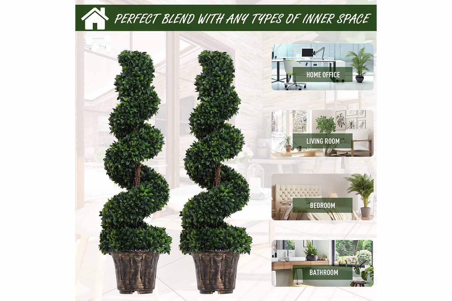 - Set of 2,beautiful artificail decorative spiral design buxus topiary plants
