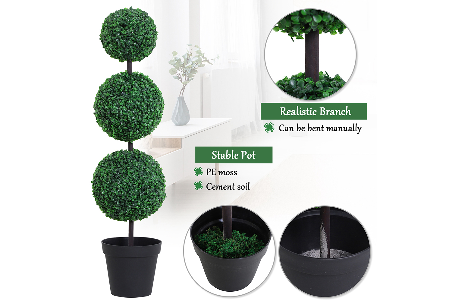 Breathe a new lease of life into your home with this artificial Taro tree from Outsunny. Sold in a set of two, each plant is presented in a tall, triple ball design for a unique and stand-out design which instantly brightens up your surroundings. Filled with cement each black pot keeps the plant upright, with it delivered fully assembled to allow you to place it where you want straight away. The easy way to inject greenery into your home with no upkeep required.