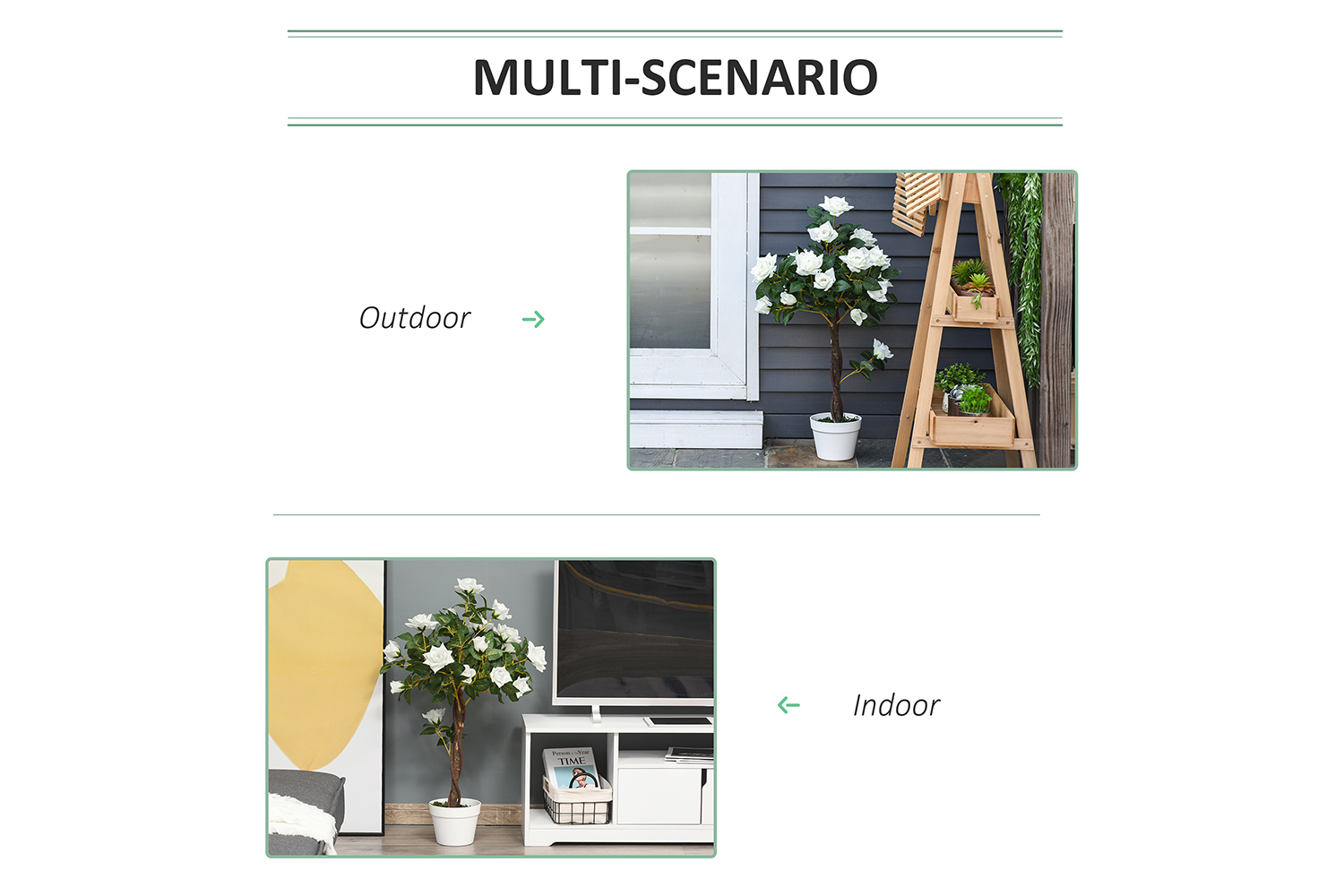Want to grow plants but can't keep them always green? Our artificial camellia plant is exactly what you need, it will stay green for many years without trimming and shaping. No watering, no fertilization, no worries when traveling. Comes pre-potted,it is delivered ready to use and goes well with any kind of décor, great for indoor and outdoor spaces.