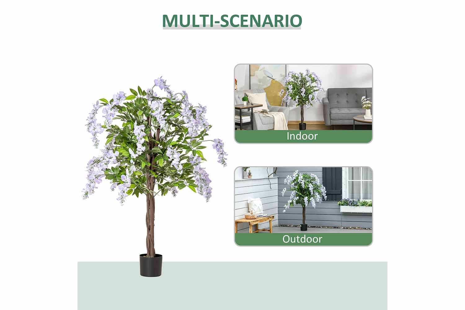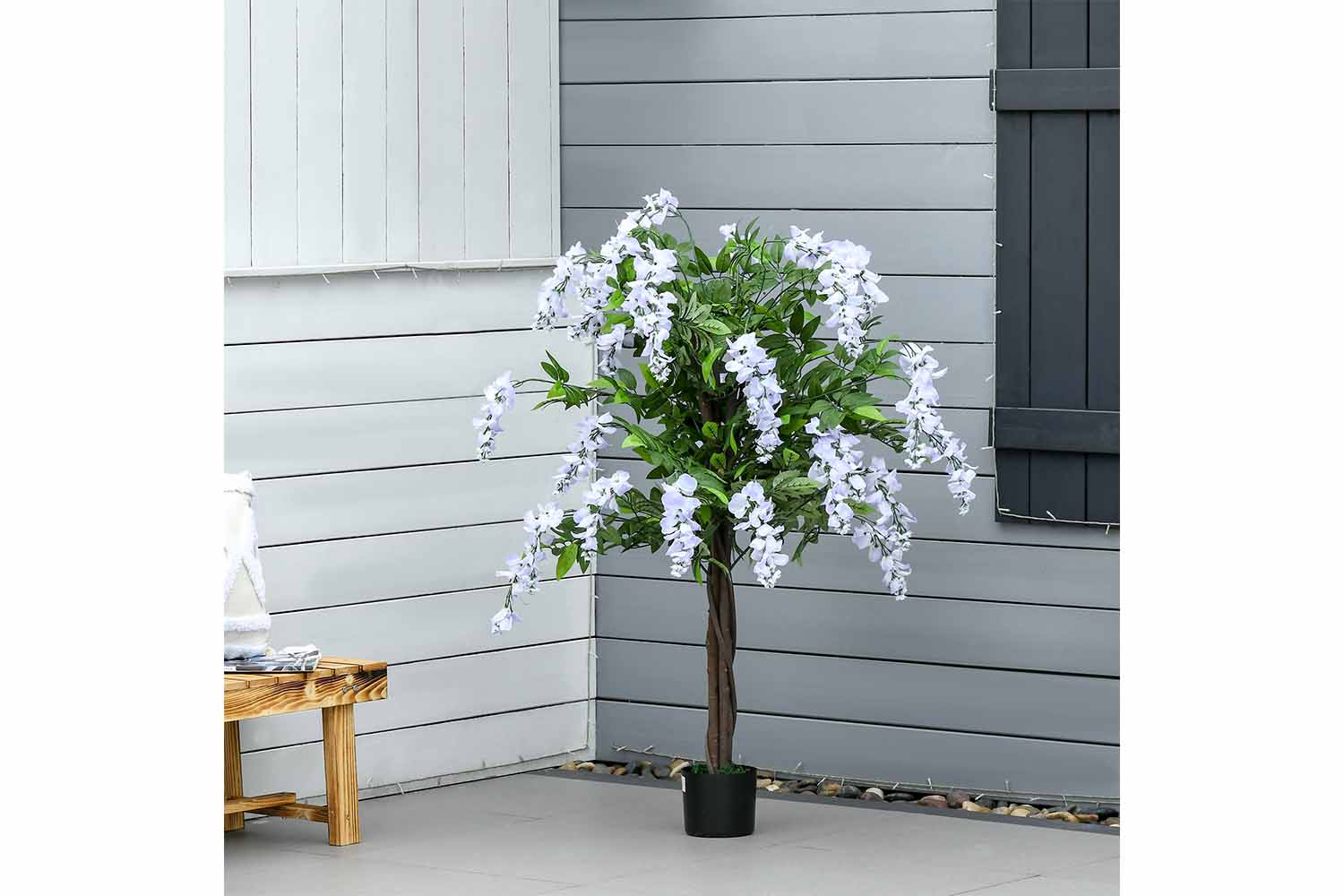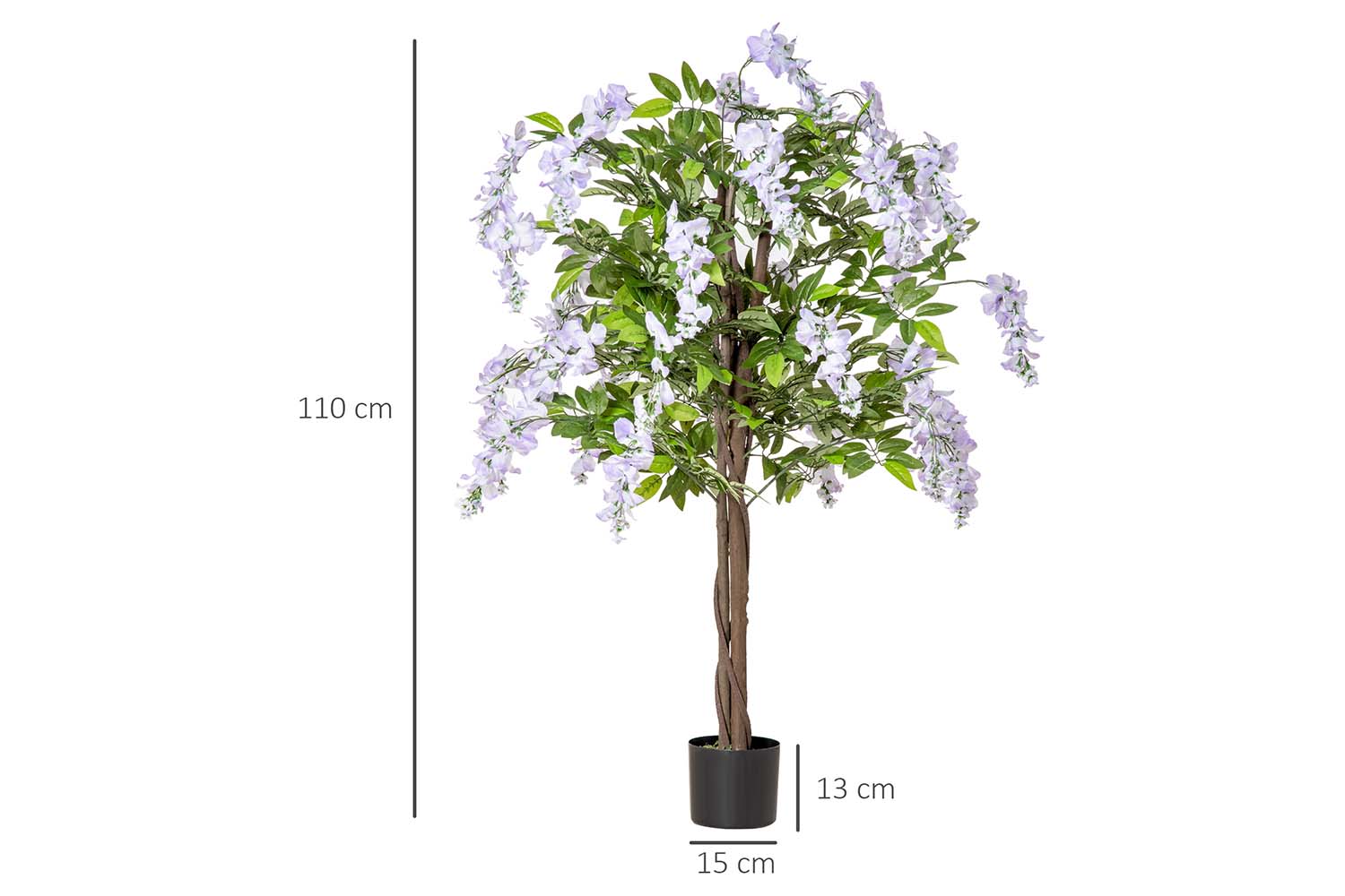 This artificial Wisteria tree is a beautifully natural design, it's difficult to distinguish from a real plant. It will bring a touch of nature into your home and outdoor areas all year round, without the constant upkeep of watering, trimming and fertilising. 840 leaves and 36 flowers for a full look, complete with a cement-filled plant pot.