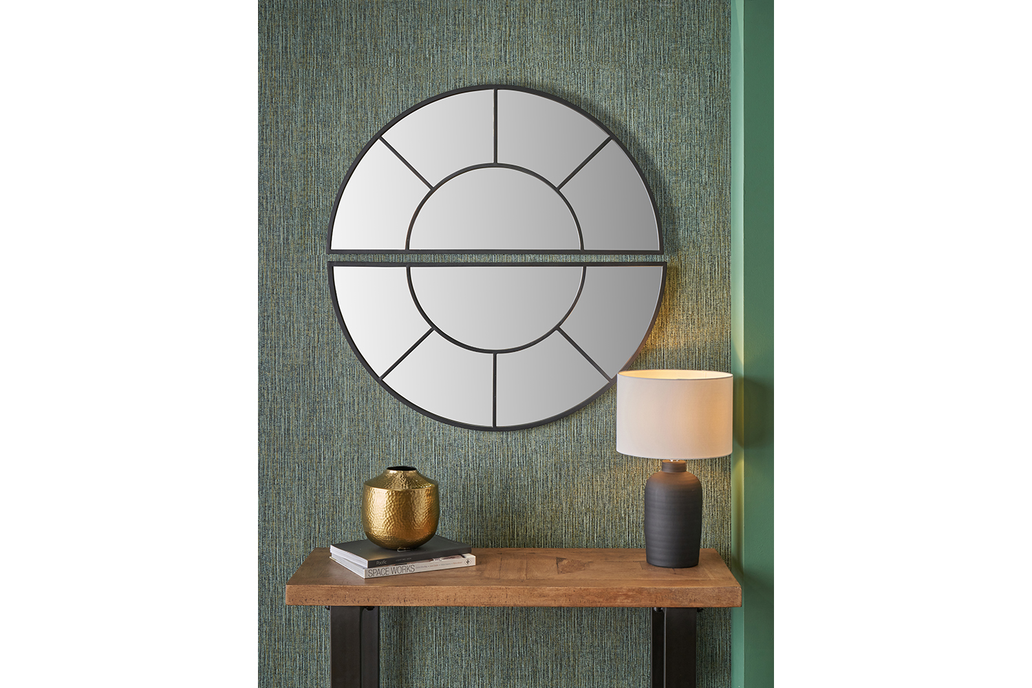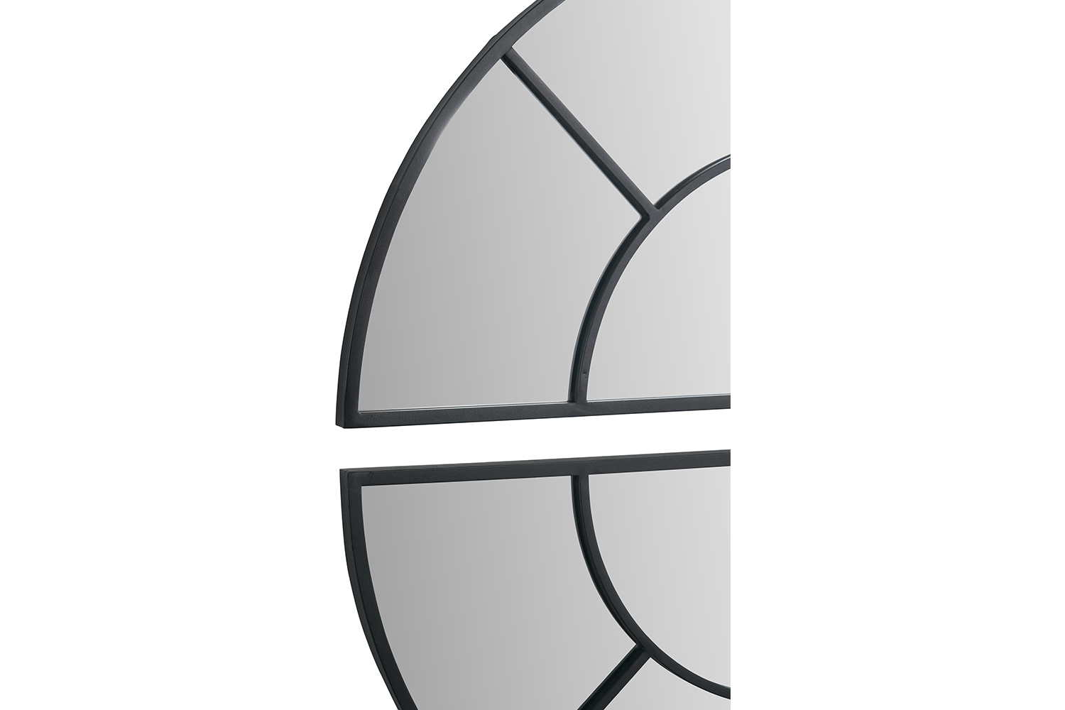 Introducing the Half Moon Wall Mirror, a contemporary statement piece designed to elevate any interior. Crafted with a sleek black metal frame, this mirror delivers a look that is simple yet smart, bringing clean, crisp design into your space. What makes this mirror truly unique is its two-part sectional construction. Supplied in two halves, it can be mounted together to form a full circular mirror, leaving a subtle, stylish gap between the pieces — a modern detail that transforms it into a striking feature for any wall.