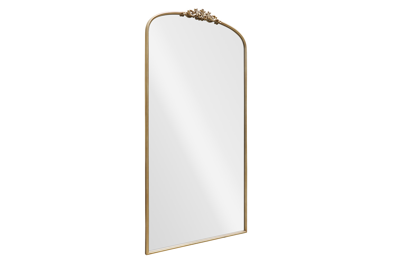 The perfect item to add style and depth to any room is the Juliette metal arch leaner mirror, a stunning blend of functionality and style. Encased in a stunning gold metal frame with an intricate adornment at the top, the Juliette mirror will radiate refined elegance into your home.