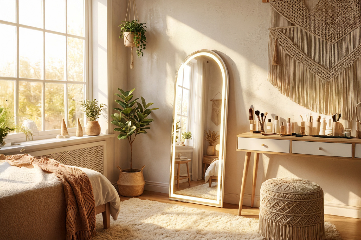 The perfect item to add style and depth to any room is the Modena LED Arch Wall Mirror a stunning blend of functionality and modernity. Sleek, contemporary, and versatile, its minimalist design seamlessly complements any furniture style. The arch design adds a touch of elegance, while the slim white frame adds visual contrast. With integrated LED lighting, this mirror offers optimal illumination for dressing, ensuring you always look your best. Available in a range of shapes, sizes and colours so you’re sure to find the perfect fit for any room.