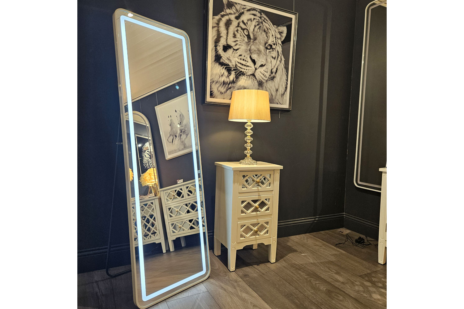 Modena LED Cheval Mirror | White | 50 x 160 cm