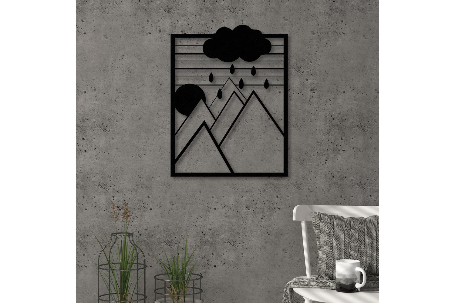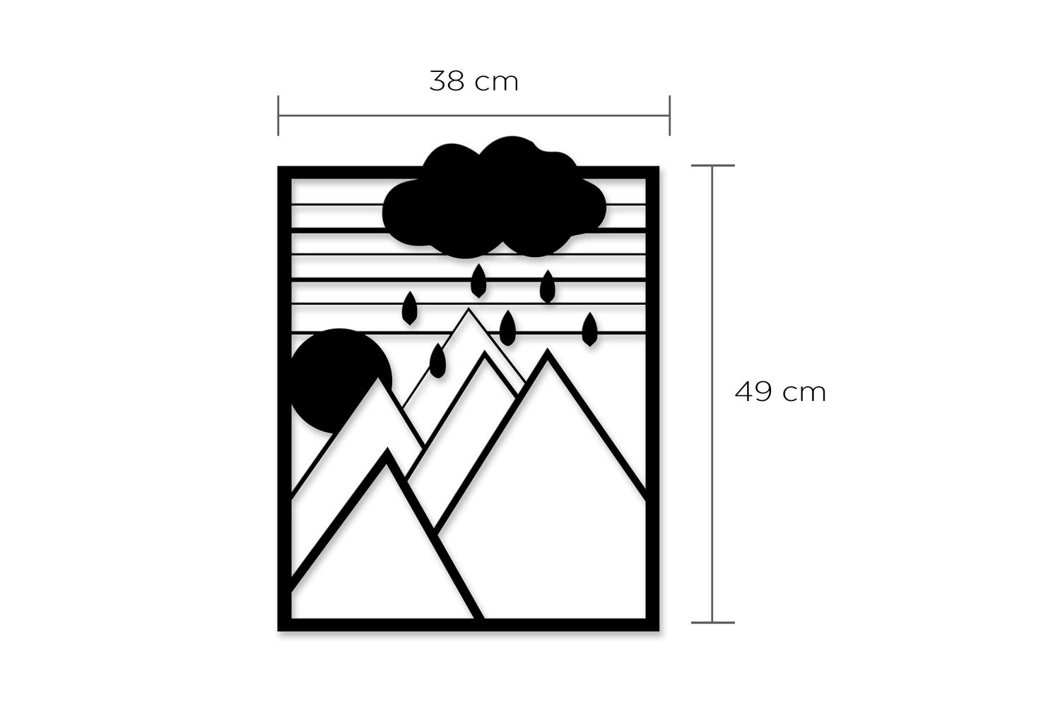 - Modern minimalist design with a serene mountain and rain cloud motif