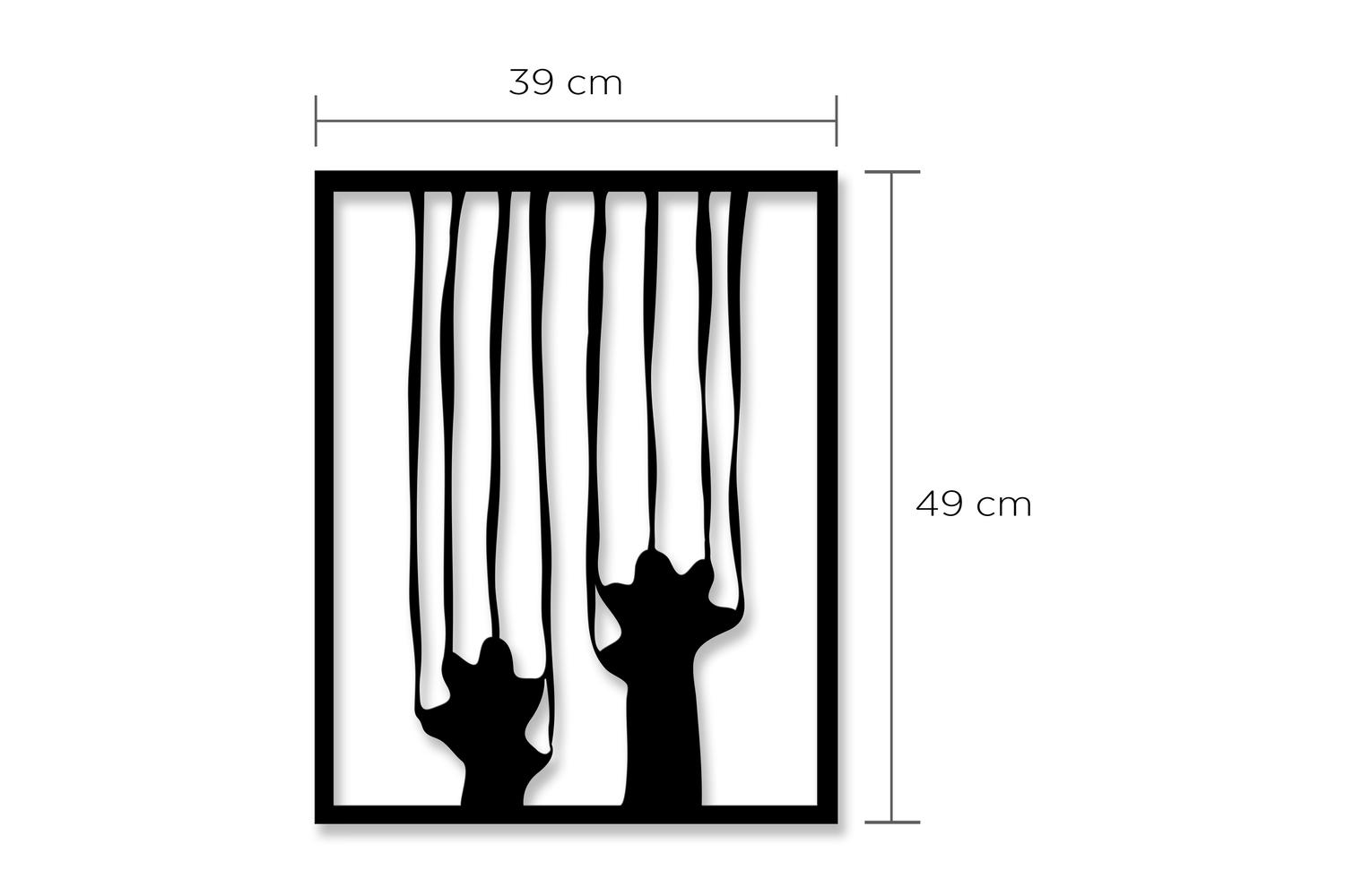 Expertly constructed from robust metal, this wall ornament features a striking black finish that complements a wide range of colour schemes. The sleek silhouette and eye-catching cat paw motif create a sense of movement and sentimentality, making it an ideal choice for cat lovers and design enthusiasts alike. Measuring 49cm in height and 39cm in width, it offers a bold statement without overwhelming your space, perfect for hallways, living rooms, bedrooms, or even a stylish office.