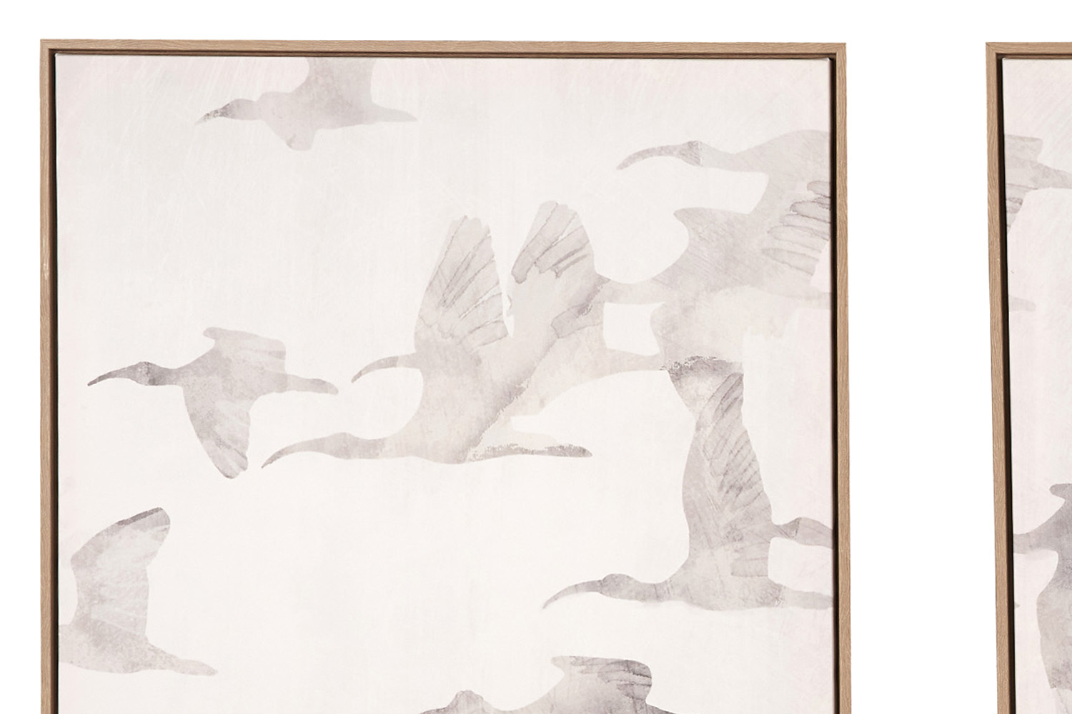 Reinvigorate your home with this stunning set of three canvases which are sure to be an eye-catching statement piece no matter where you place it. Depicting birds in flight in a natural theme, this design will add a peaceful sense of movement and an elegant focal point to compliment any space.