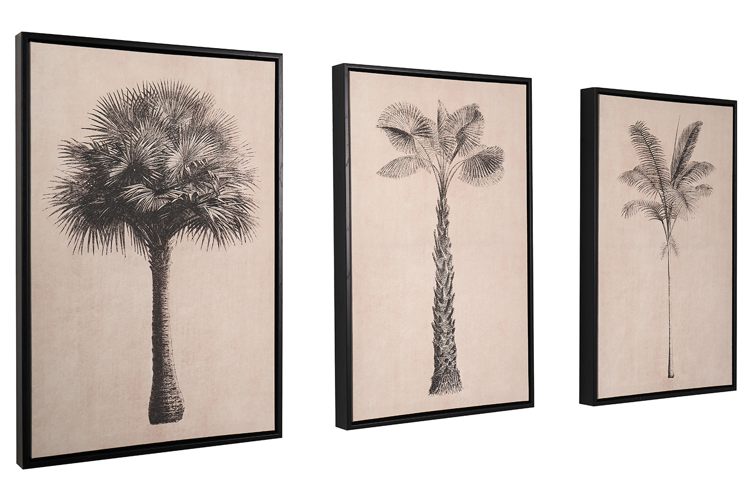 Palm Tree Print Canvases | Natural/Black | 40 x 60 cm | Set of 3