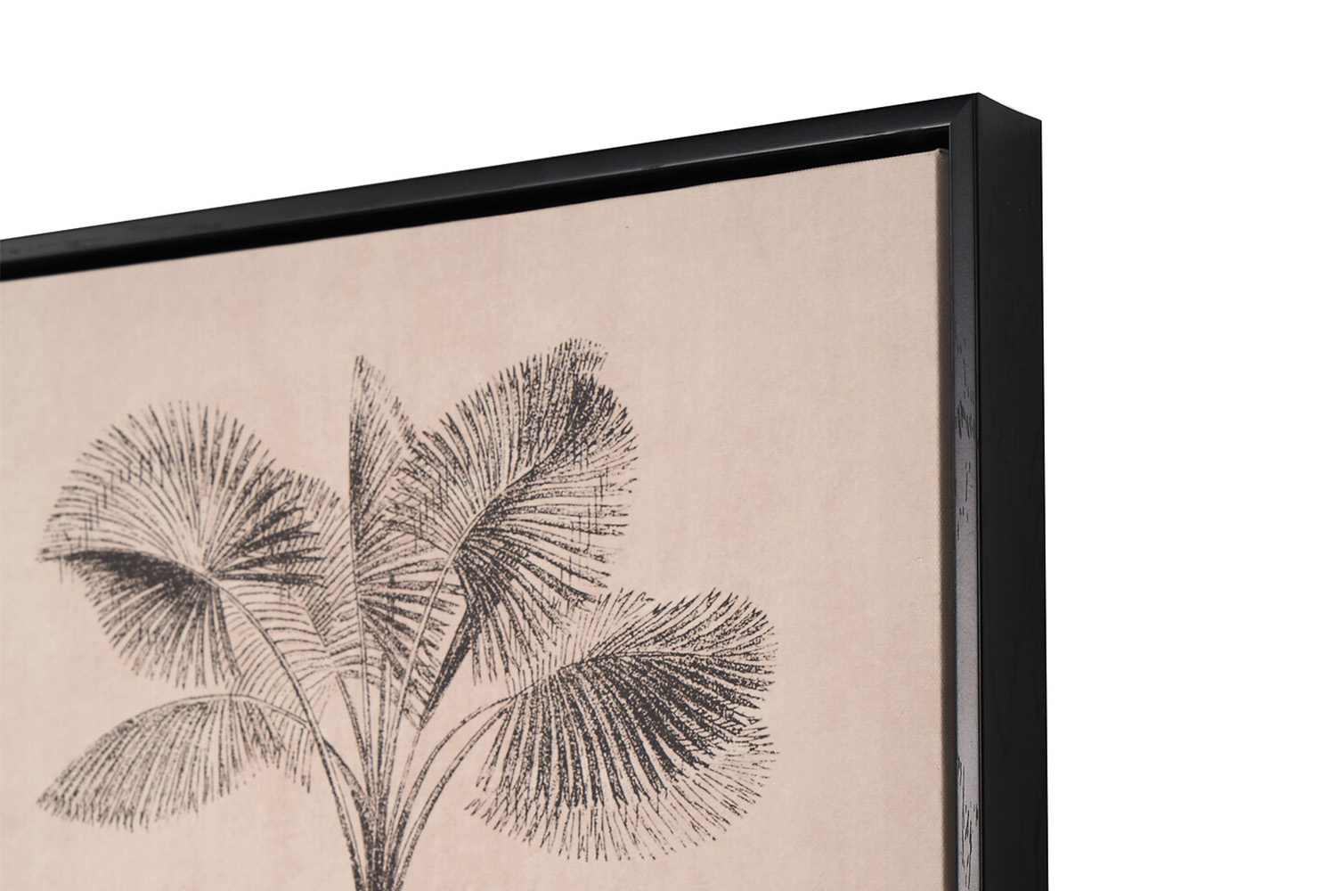 Add a touch of sophistication to your space with the Palm Tree Print Canvases Natural & Black. This beautiful wall art set features a perfect drawn canvas, making each piece unique. The modern black frame adds a contemporary flair, effortlessly elevating your home decor. Whether you're enhancing your living room, bedroom, or hallway, this elegant piece is sure to draw attention and create a focal point on any wall.