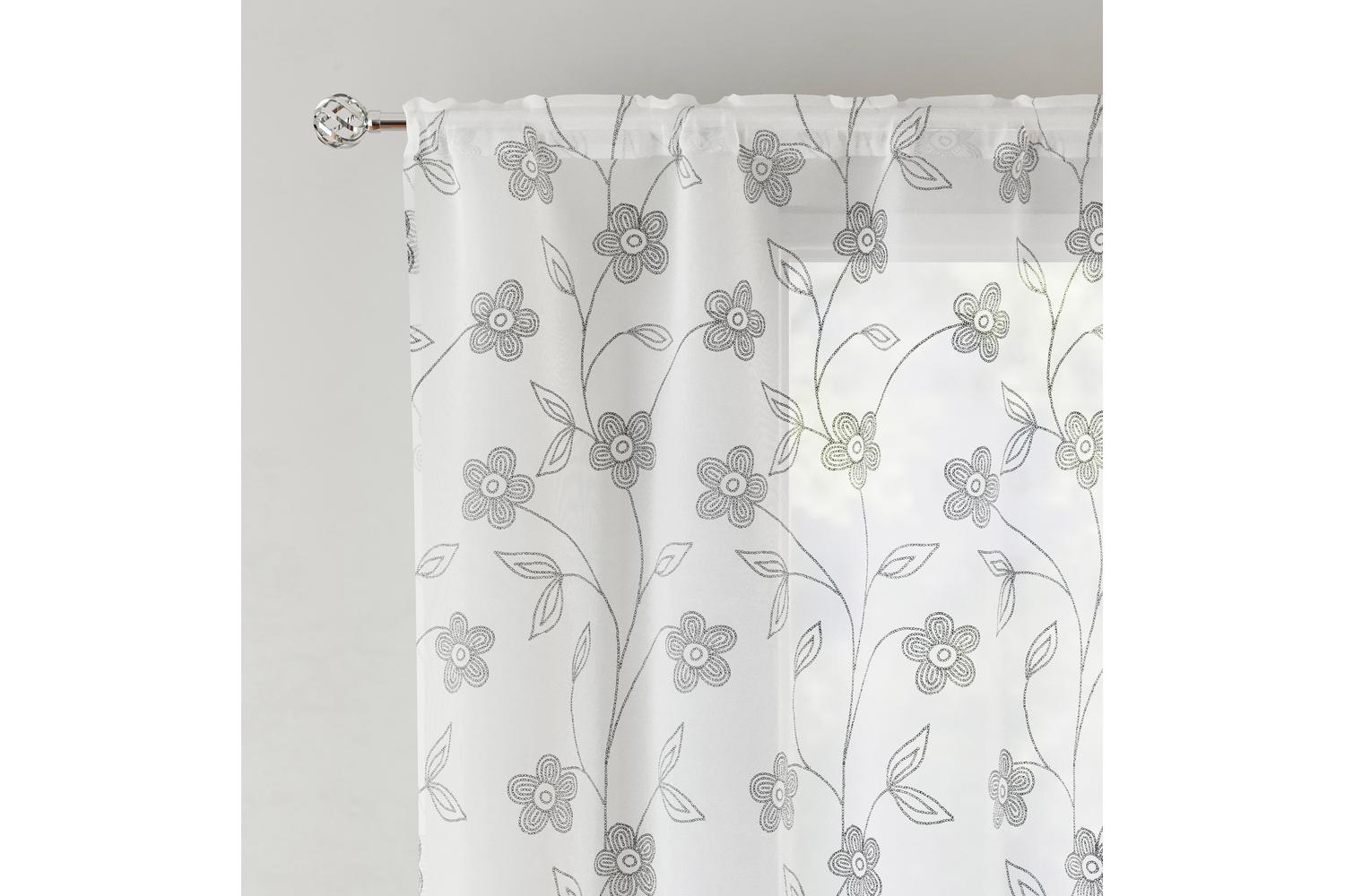 Introducing the 122cm Grey Rod Pocket Sienna Pair of Floral Paste Print Patterned Voile Panels 48 by TYRONE TEXTILES. Meticulously crafted with a delightful interpretation of a classic aesthetic, these voile panels showcase an eye-catching floral paste print. The sophisticated grey tone delivers a universal appeal designed for optimised versatility and alignment with a spectrum of home decoration styles.