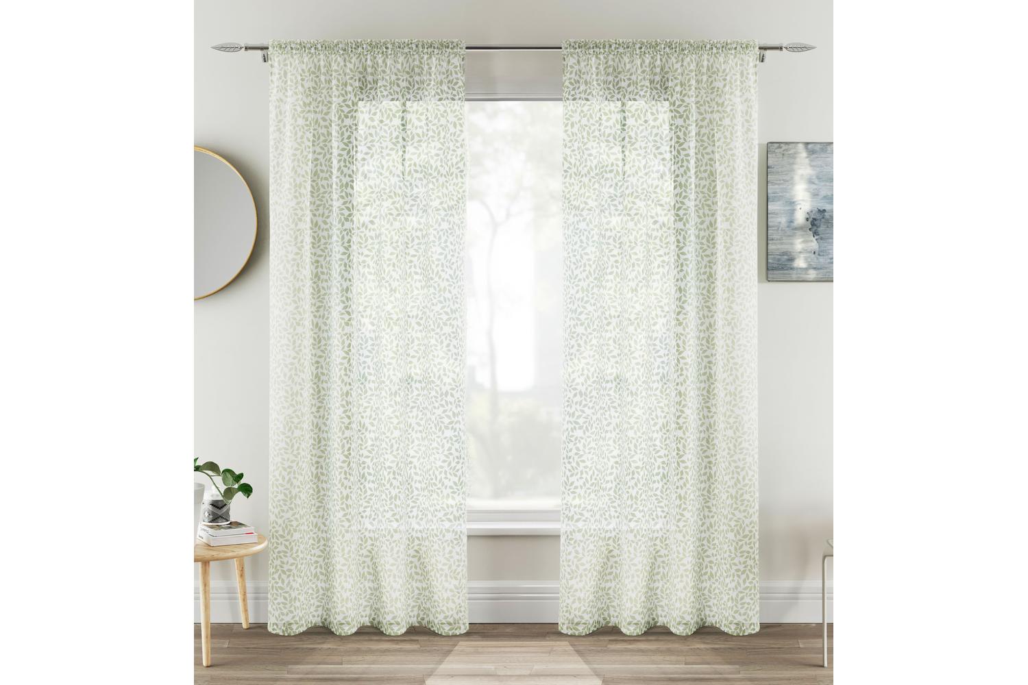 - Product Name: 140x137cm Green Rod Pocket Willow Pair Of Leaf Print Linen Look Voile Panels.