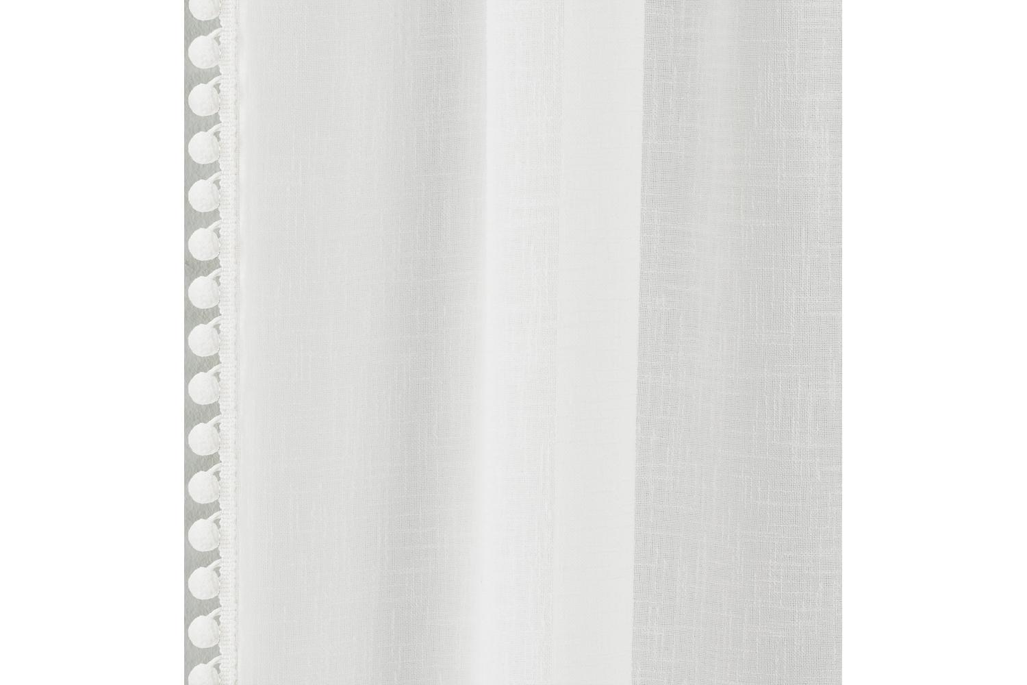 Add a luxurious touch to your home interiors with the 140x183cm White Rod Pocket Tahiti Pair of Pom-Pom Trim Linen Look Voile Panels 55x72 from TYRONE TEXTILES. Designed for an effortlessly elegant living experience, this pair of window panels will elevate any room with its blend of chic design and functional features.