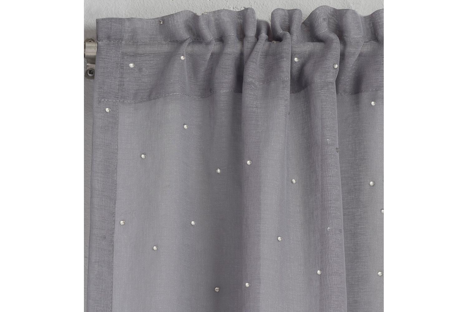 Expertly crafted to mirror the guise of natural linen but with the practicality of easy-care voile, these panels provide a gorgeous blend of sophistication and comfort. Its stunning grey tone and gorgeous diamante embellishments are ideal for those that have an eye for luxury, and appreciate the added touch of glamour within their homes.