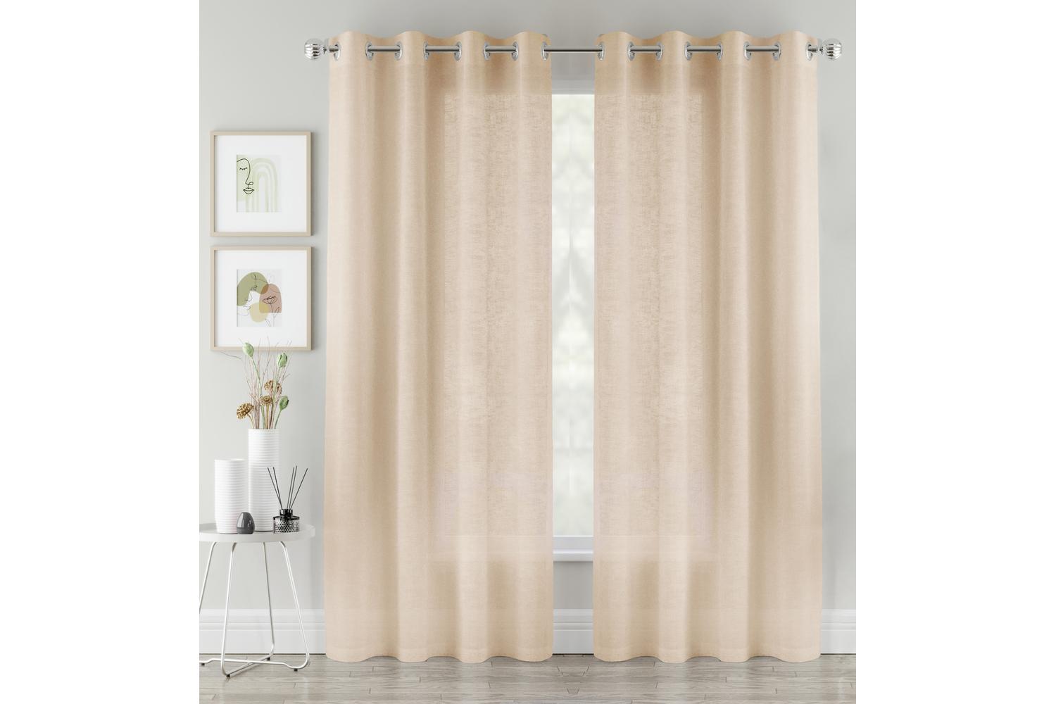 - Product Name: 140x229cm Natural Eyelet Crete Pair of Plain Luxury Linen Look Sheer Panels