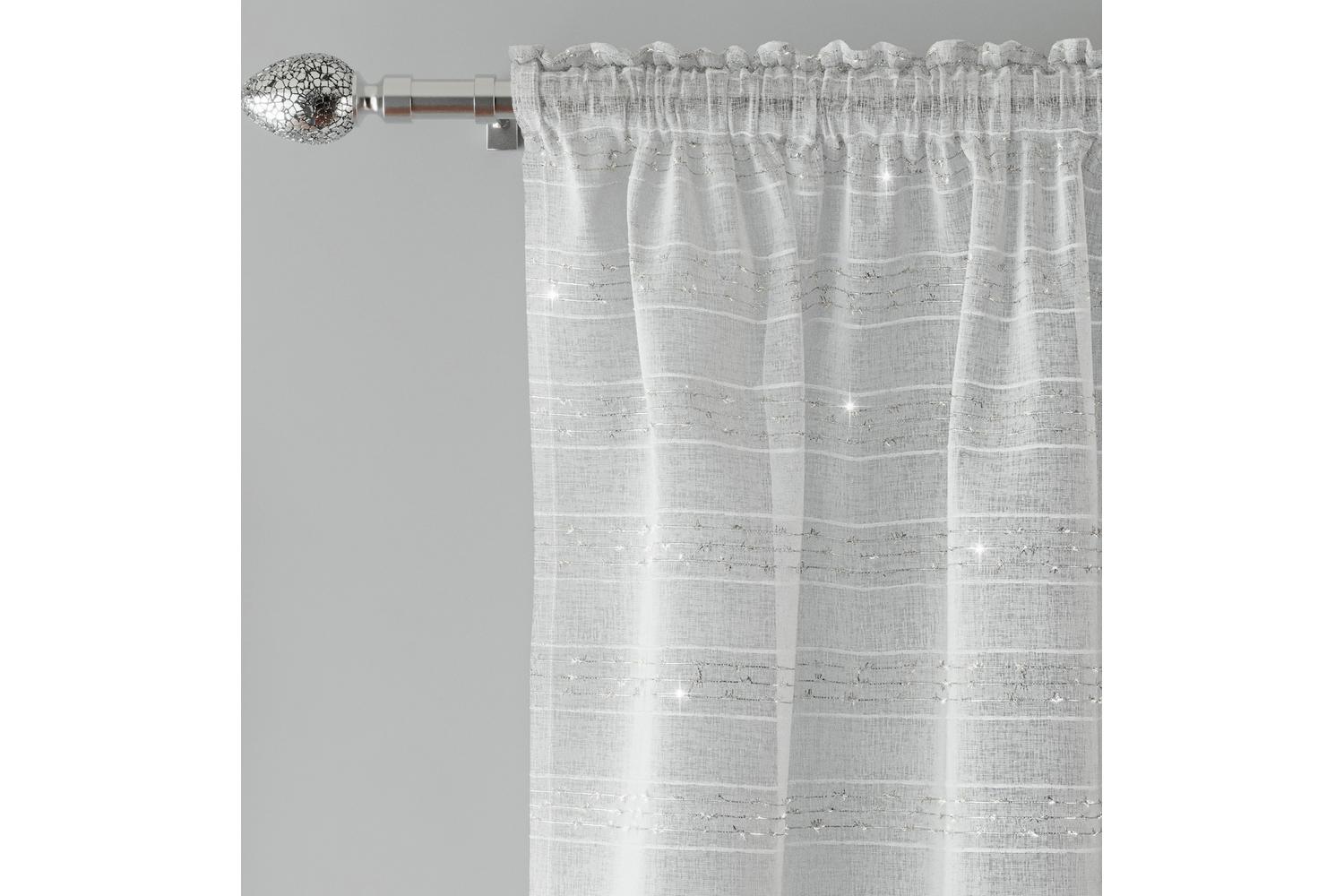 Give your home a stylish makeover that mirrors aestheticism and functionality alike with the 140x229cm Silver Rod Pocket Lima Pair of Metallic Lurex Striped Linen Look Voile Panels 55x90. Expect more compliments than you can count: welcome to Enhanced Living.