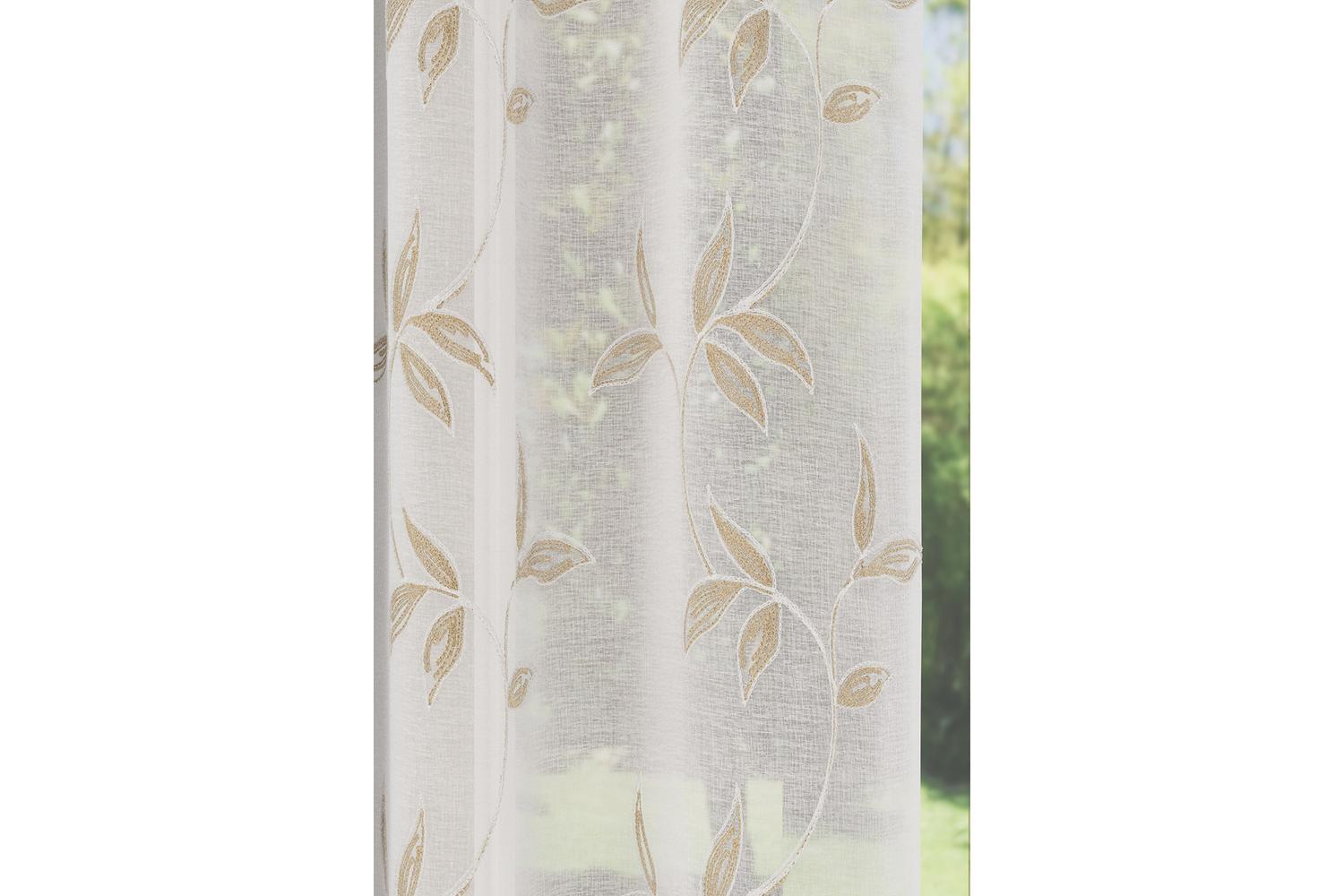 - Product Name: 55x54 Natural Oasis Rod Pocket Pair of Embroidered Leaf Design Voile Panel Sheer Curtains