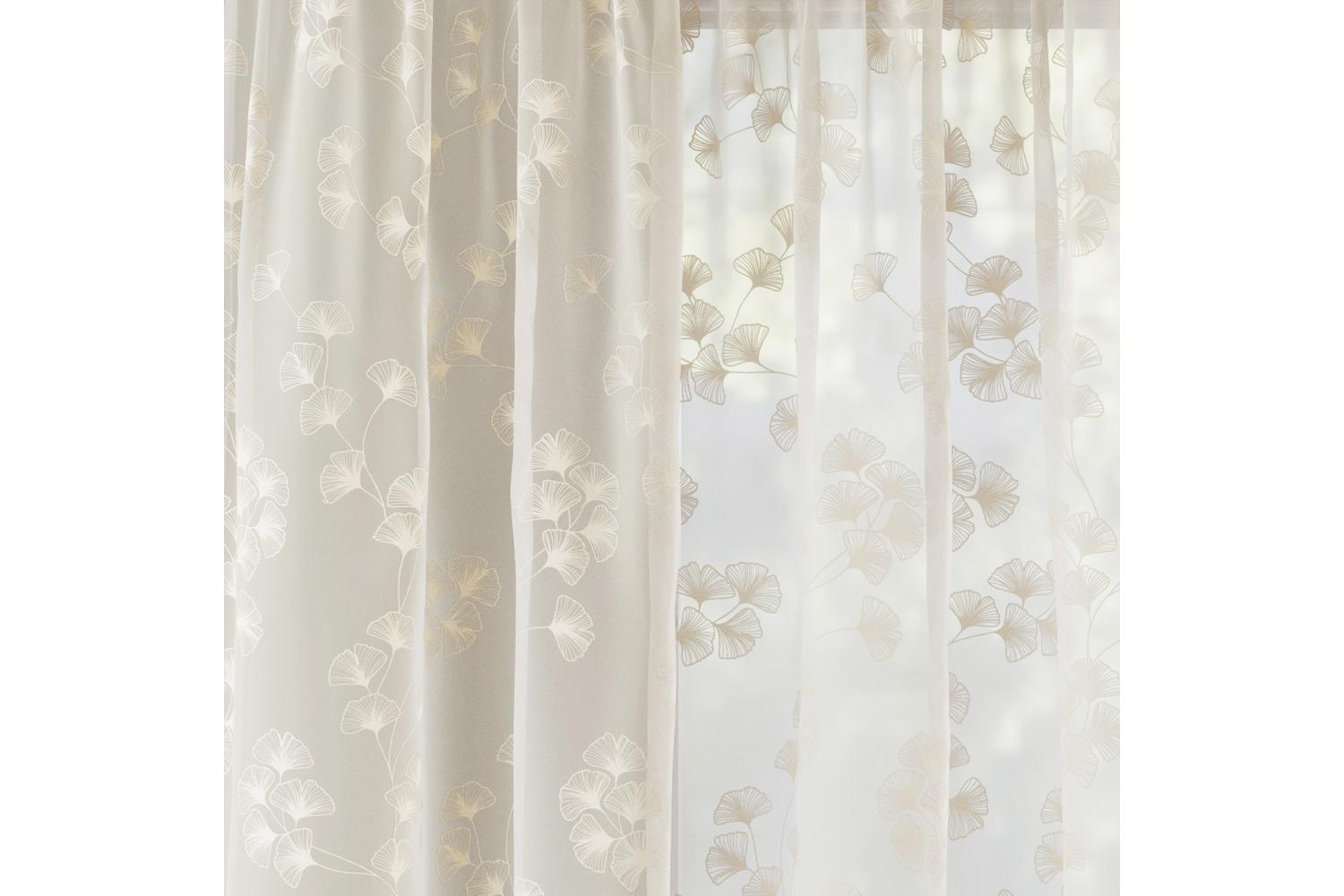 - 1 Pack of 55x72 Cream Delila Leaf Print voile panels (2 pieces)