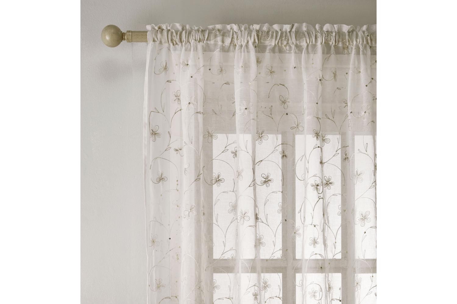 - Product Name: 55x72 Cream Rod Pocket Belle Pair of Sheer Floral Embroidery Voile Panels 140x183cm