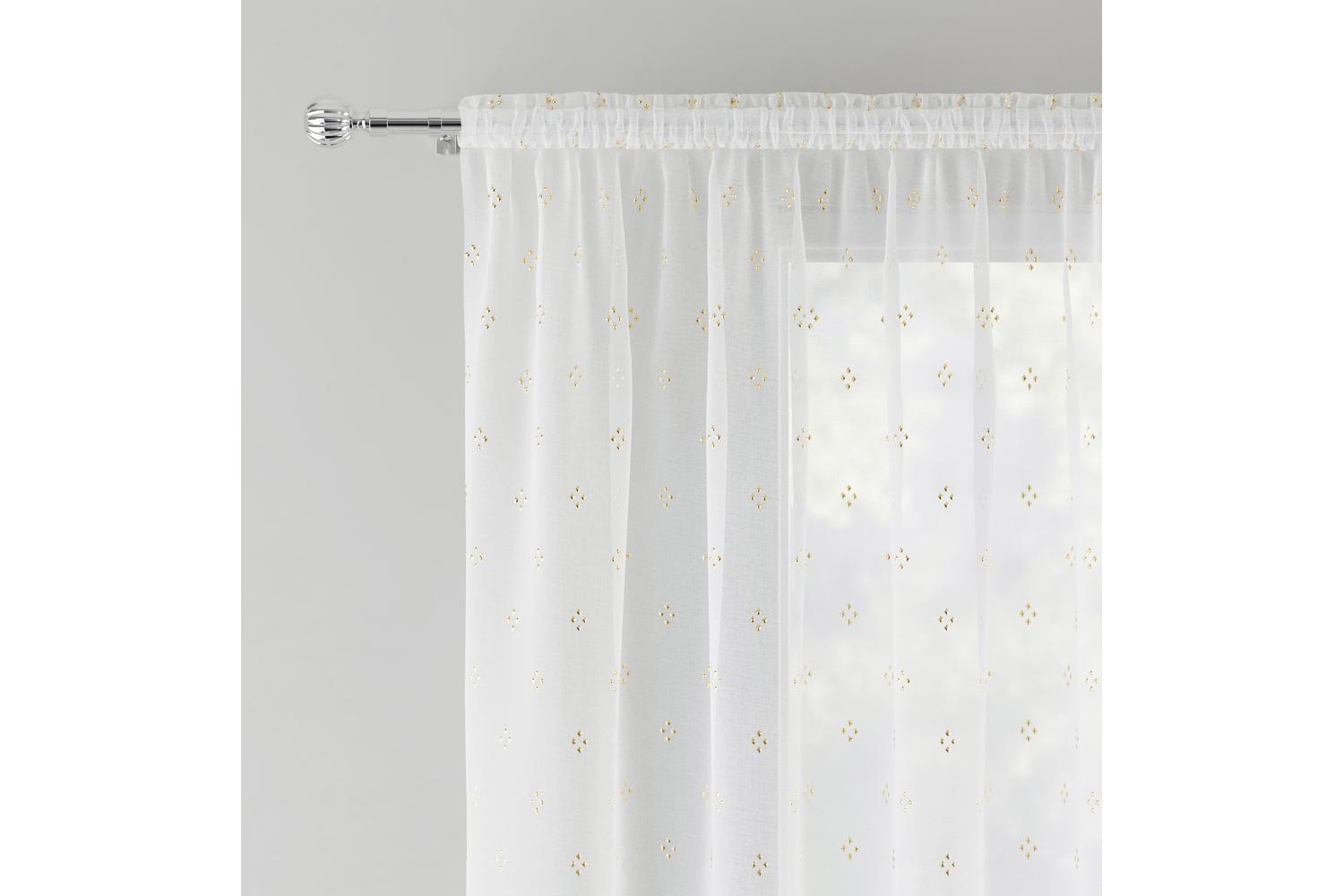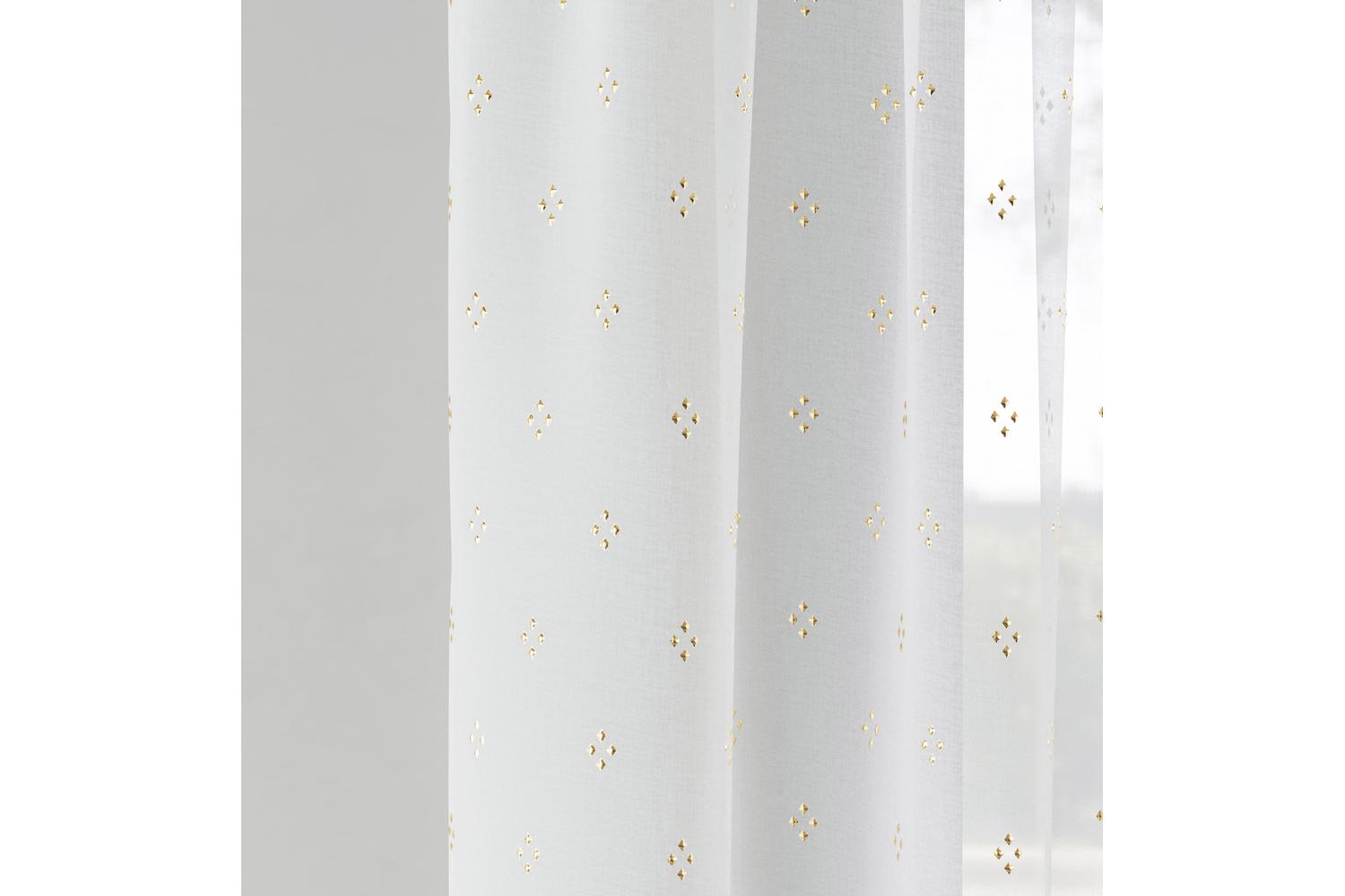 Elevate your abode with this glamorously versatile, timelessly stylish and effortlessly functional 55x90 Gold Metallic Destiny Pair of Diamond Print Sheer Voile Panels by Tyrone Textiles and bask in its luminous charm.