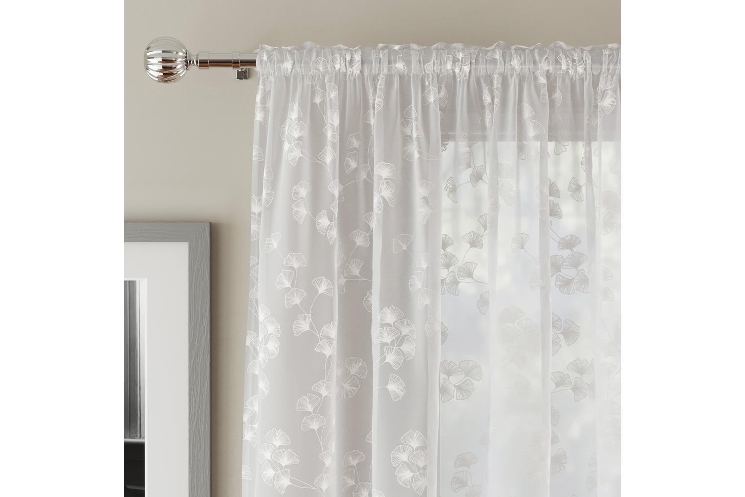 Famed for fusing style with function, this voile panel pair not only uplifts your room's aura with its captivating design but also maintains your room's private ambience. The leaf print drape subtly dances on the crisp white waterproof fabric, introducing a soft, diffused light to your space. Whether you are kitting out a modern, minimalist living space, or enhancing an eclectic, transitional style, these versatile voile curtains provide the finishing touch to your interior décor. Breezy and utterly chic, this pair of curtains are as much a charm for Irish country homes as they are for city apartments.