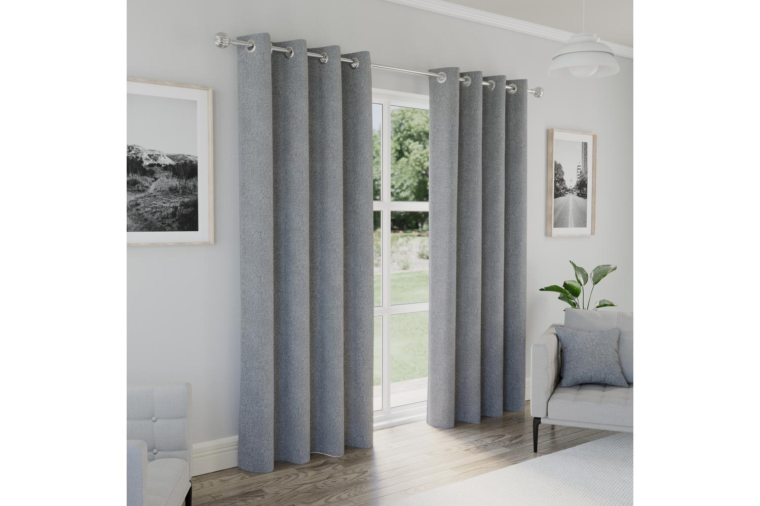 Roll out the ENHANCED LIVING 66x54 Grey Eyelet Austin Plain Pair of 100 Blackout Thermal Noise Reducing Curtains and enjoy an instant upgrade to your interiors. Perfectly suited to the Irish weather, these beautifully tailored curtains feature a textured basketweave design that adds charm and function to any room.