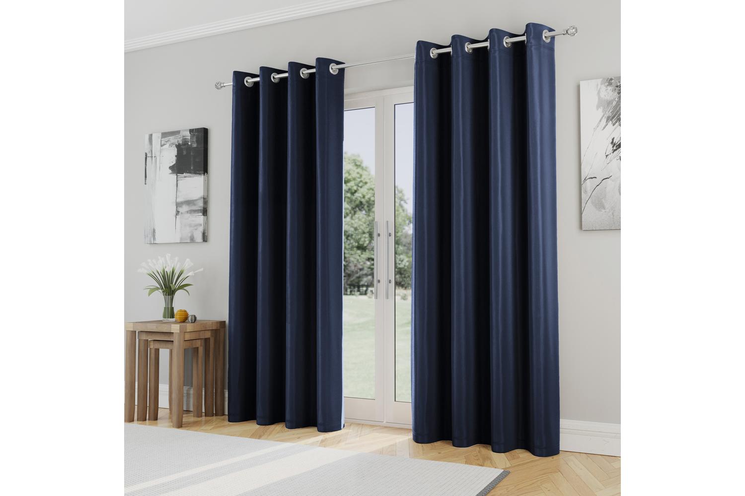 Laying emphasis on comfort, convenience, and class, the 66x54 Navy Eyelet Nightfall Pair of Room Darkening Supersoft Thermal Energy Saving Noise Reducing Curtains let you experience a home that's a haven with just the right shades of tranquillity, style, and vibrant life!