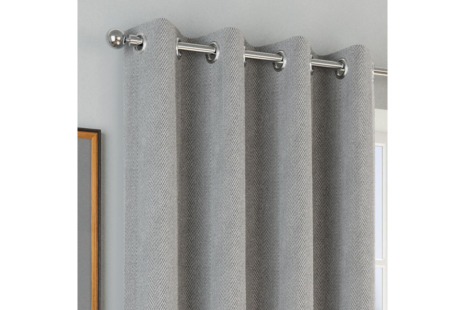 Enjoy homeliness with a touch of luxury and grace with our 66x90 Grey Eyelet Chester Pair of Herringbone Jacquard Thermal Noise Reducing 100 Blackout Curtains. Experience the transformative magic they bring to your home today!