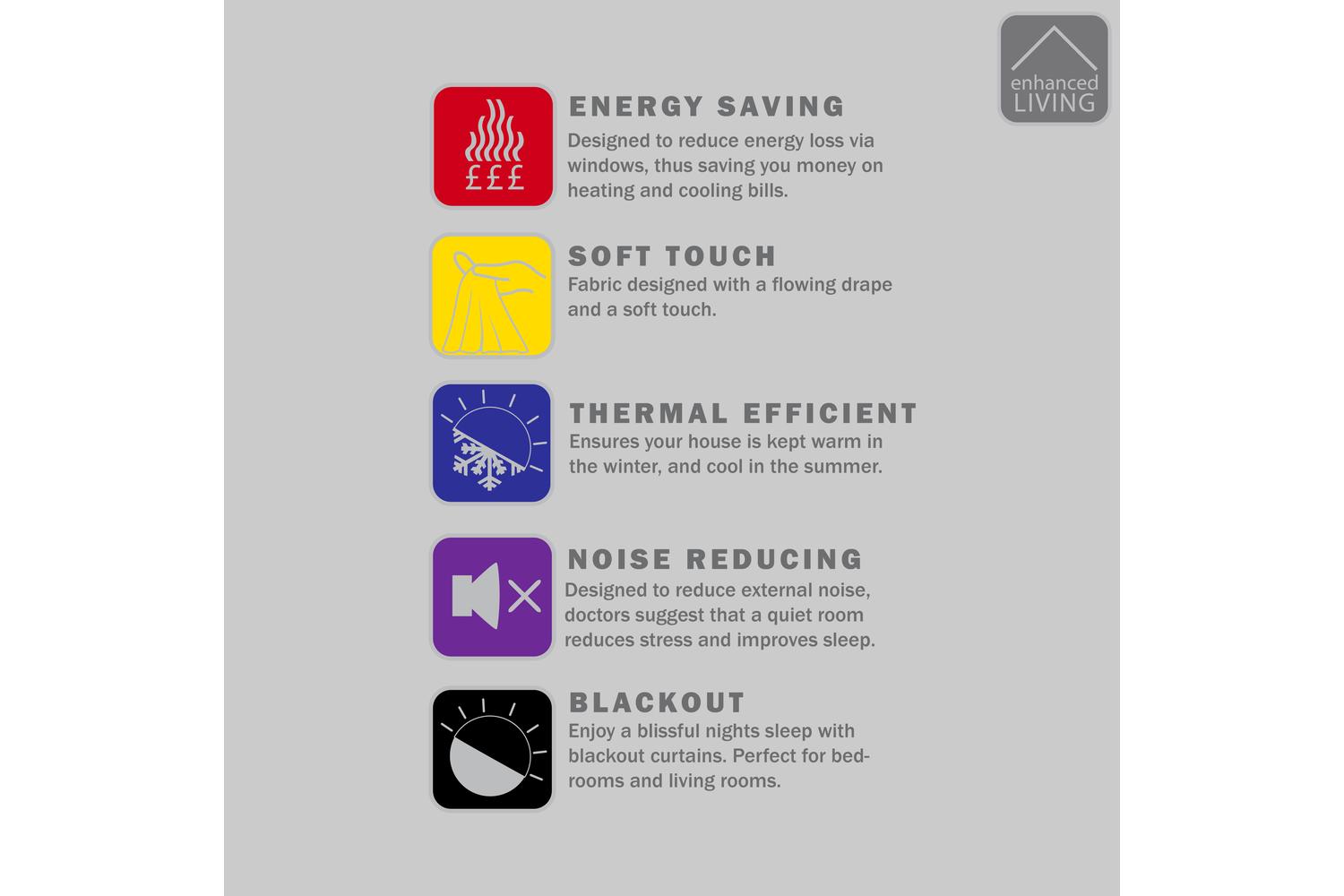 With excellent thermal properties, our curtains contribute to your room’s temperature regulation, keeping it warm in the chilly winter season and pleasantly cool when summer rolls around. Embrace the impeccable blend of design, utility, and durability offered by Enhanced Living’s premium curtains.