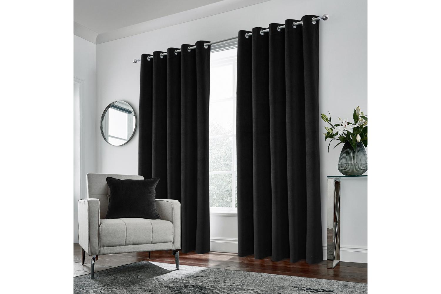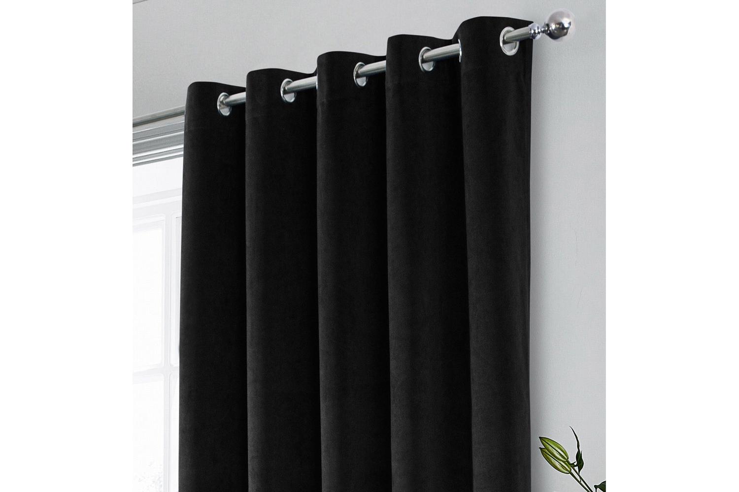 The elegant 90x72 Black Velvet Eyelet Pair of 100 Blackout Thermal Supersoft Curtains furnishes both style and functionality, a sophisticated addition to your homely treasure. Experience the bliss of an uninterrupted sleep and a cozy place with TYRONE TEXTILES' artistic innovation.