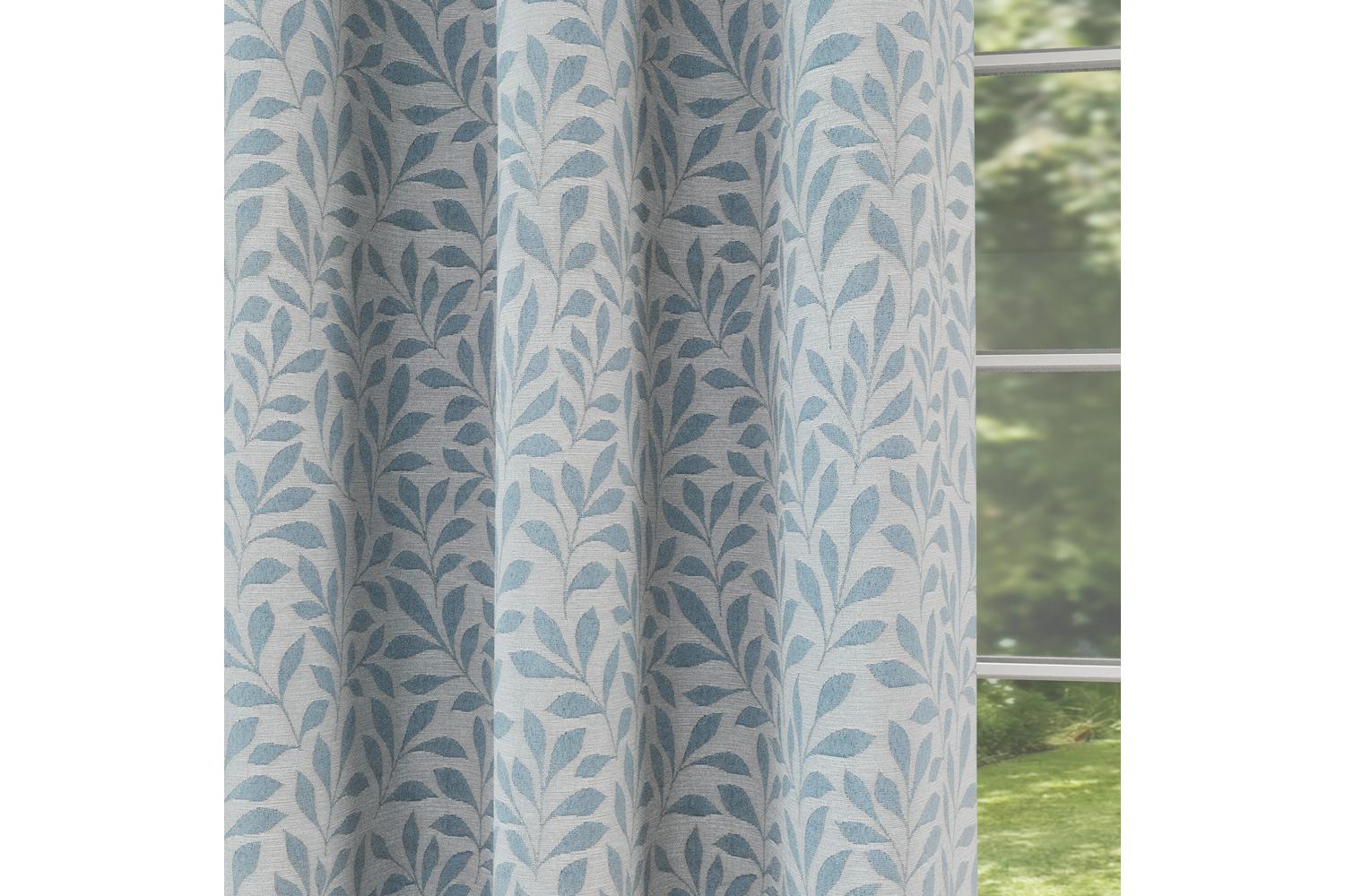 Mounted with simplicity using the 4cm diameter eyelet heading, these home furnishings are an aesthetic addition that supports room functionality in tandem. The epitome of craftsmanship, this pair of curtains combines ice-blue tones with a nature-inspired leaf pattern that complies with most design themes, bringing a balance between serenity and grandeur.