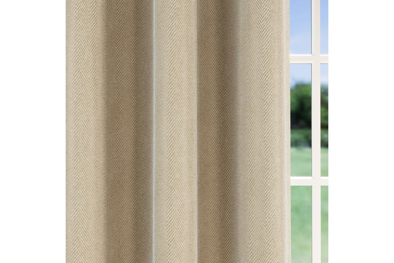 Encapsulate the unrivalled comfort in your living space with the 90x90 Natural Eyelet Chester Pair of Herringbone Jacquard Thermal Noise Reducing 100 Blackout Curtains by Enhanced Living. Expertly crafted for those who appreciate a room with optimal light control and peace, these high-quality curtains are an outstanding addition to both your living room and bedroom.