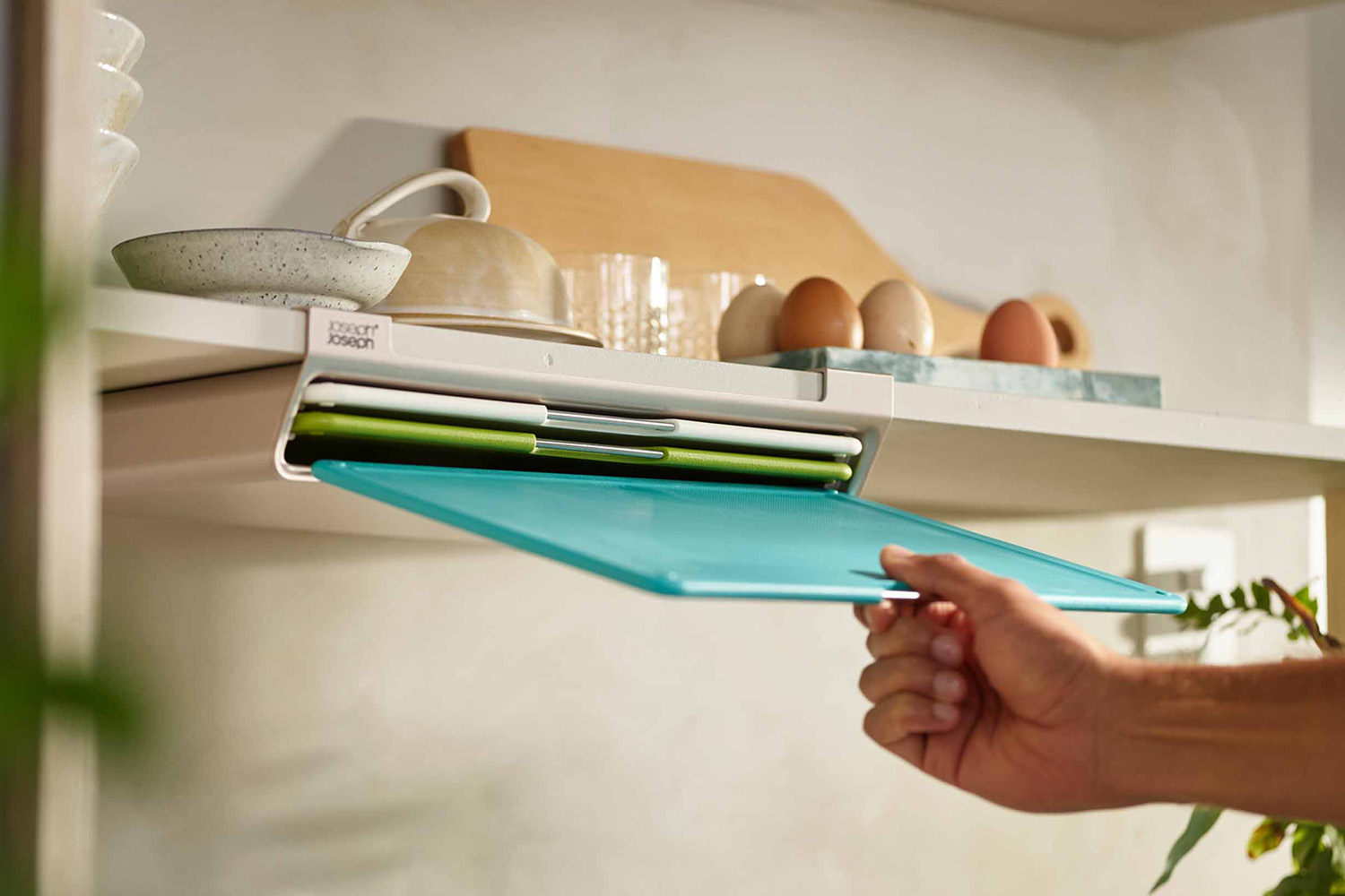 Adding to its practicality, these chopping boards are securely housed in a slimline storage case that can be easily mounted beneath or inside the kitchen cupboard. This makes use of the often-negative space, providing a smart storage solution. The case comes with a tiered design to make the boards easy to select, creating an organised and clutter-free environment. It is secured with screws and its simple installation method is a major plus point.
