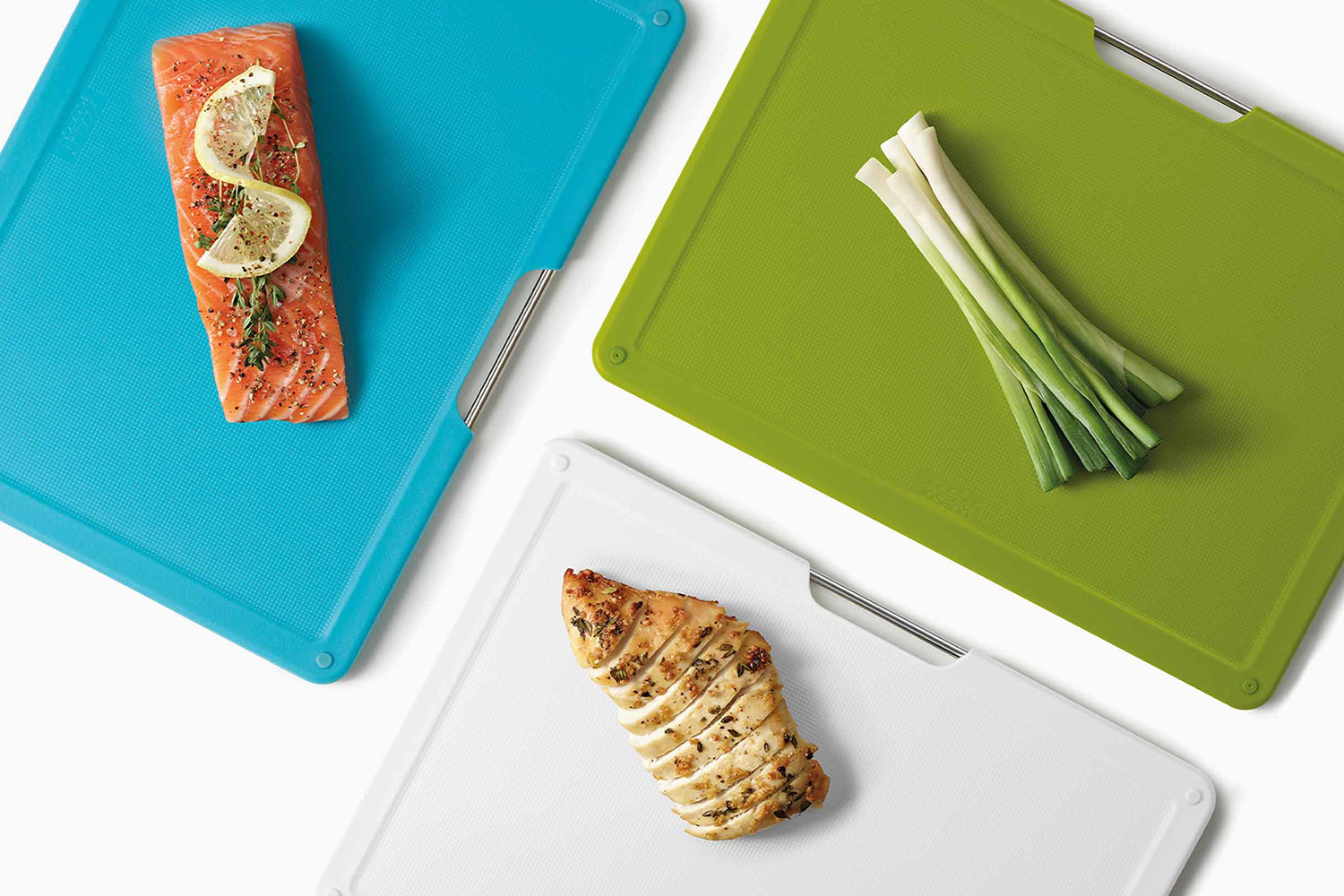 - Resilient, knife-friendly, double-sided chopping boards: 1 red, 1 white, 1 green